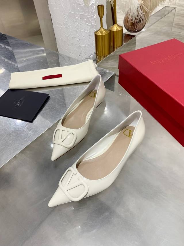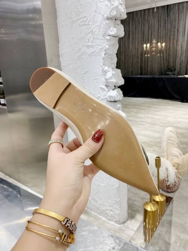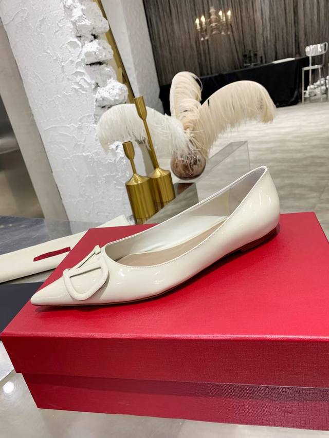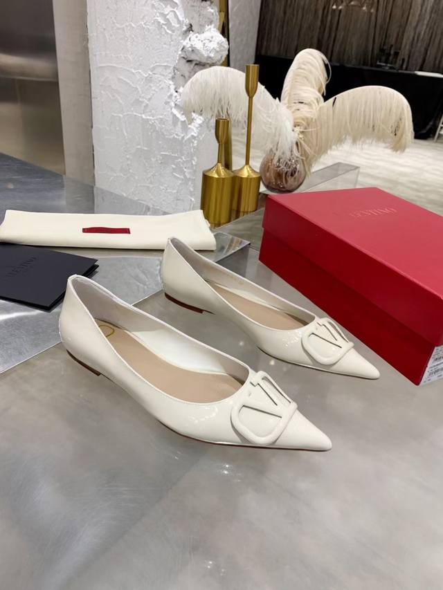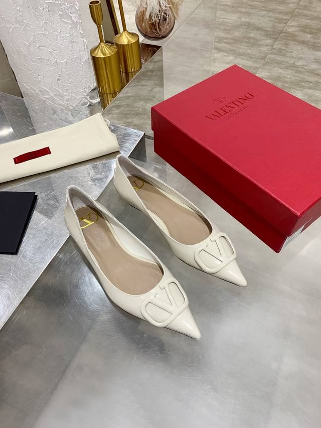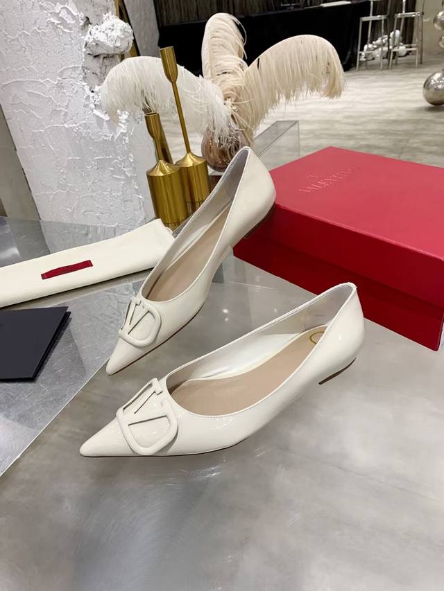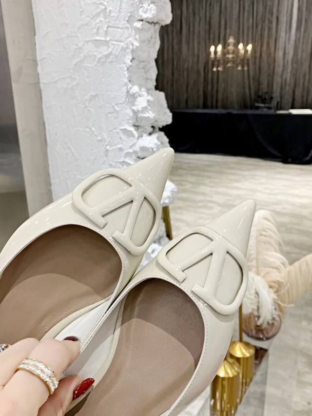 FFF 工厂P 小牛漆皮 DDD Valentino 华伦*奴跟鞋时装鞋 DDD Garavani Vlogo Signature系列 V扣尖头单鞋 小牛皮高跟鞋 高频焊接工艺皮质 Vlogo 配饰 跟高:7.5Cm 4.5Cm 平底 35-40 40.41无退换 DDD