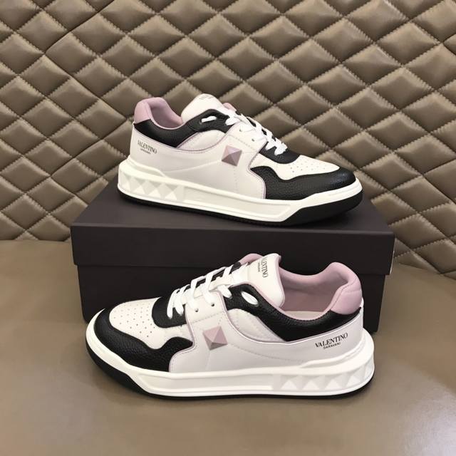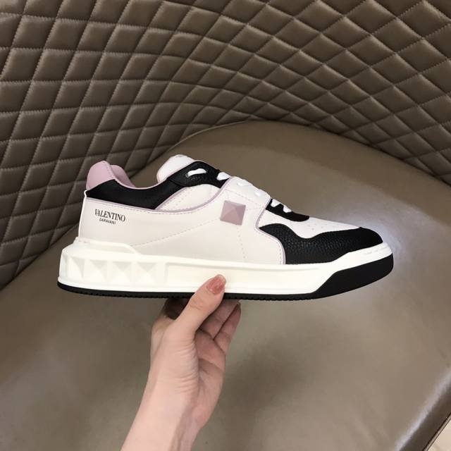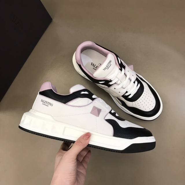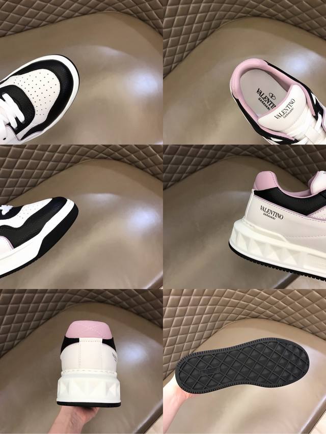 Valentin* 华伦天奴One Stud系列厚底增高运动鞋,简约明快构造清爽新潮穿搭!衍缝格纹与超大铆钉,打造瞩目朋克风格,考究皮质构塑和简洁轮廓,流畅的线条奠定酷感基调,是最经典的百搭单品!厚底增高5Cm,气场拉满。 Size:38-44 45定做Jl