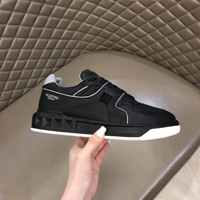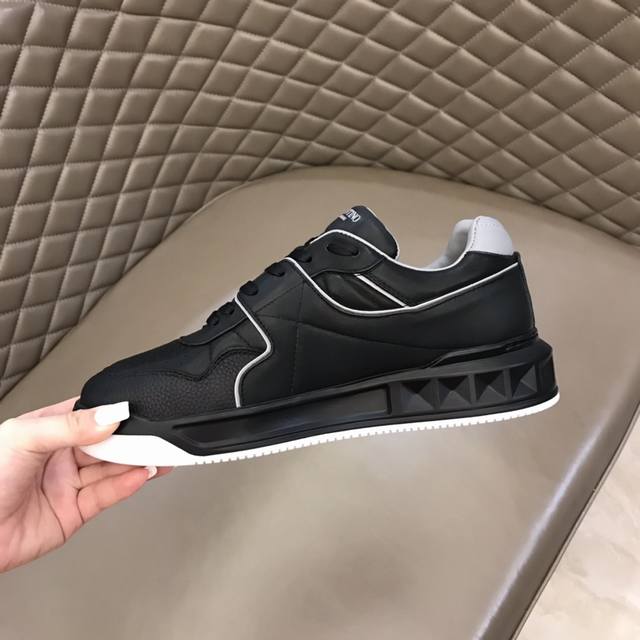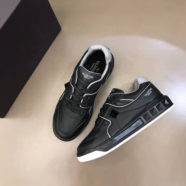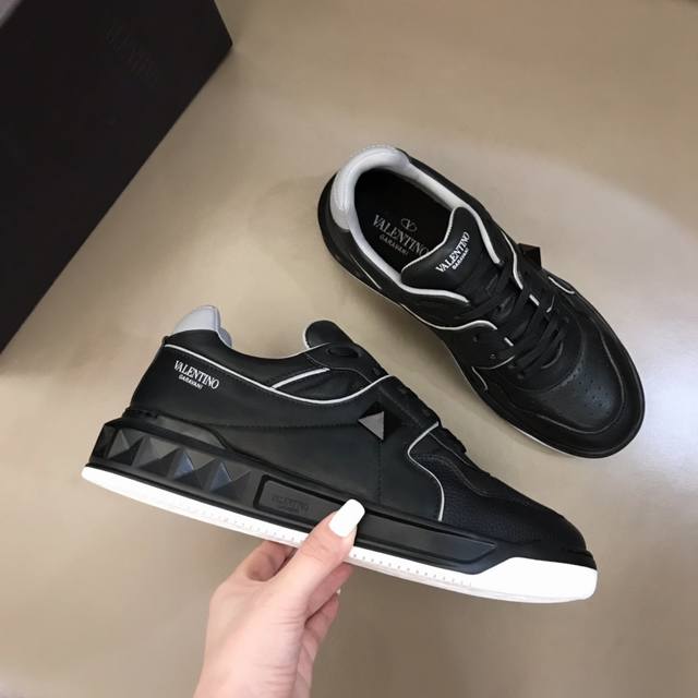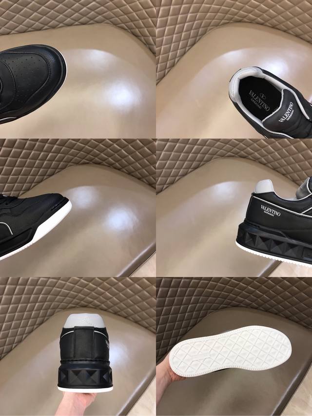 Valentin* 华伦天奴One Stud系列厚底增高运动鞋,简约明快构造清爽新潮穿搭!衍缝格纹与超大铆钉,打造瞩目朋克风格,考究皮质构塑和简洁轮廓,流畅的线条奠定酷感基调,是最经典的百搭单品!厚底增高5Cm,气场拉满。 Size:38-44 45定做Jl
