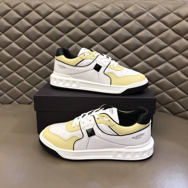 Valentin* 华伦天奴One Stud系列厚底增高运动鞋,简约明快构造清爽新潮穿搭!衍缝格纹与超大铆钉,打造瞩目朋克风格,考究皮质构塑和简洁轮廓,流畅的线条奠定酷感基调,是最经典的百搭单品!厚底增高5Cm,气场拉满。 Size:38-44 45定做Jl