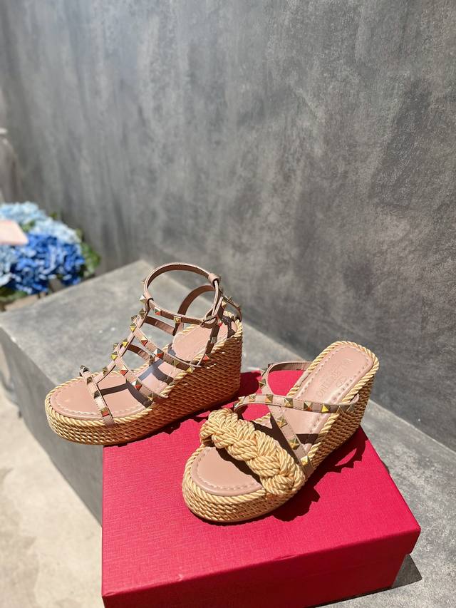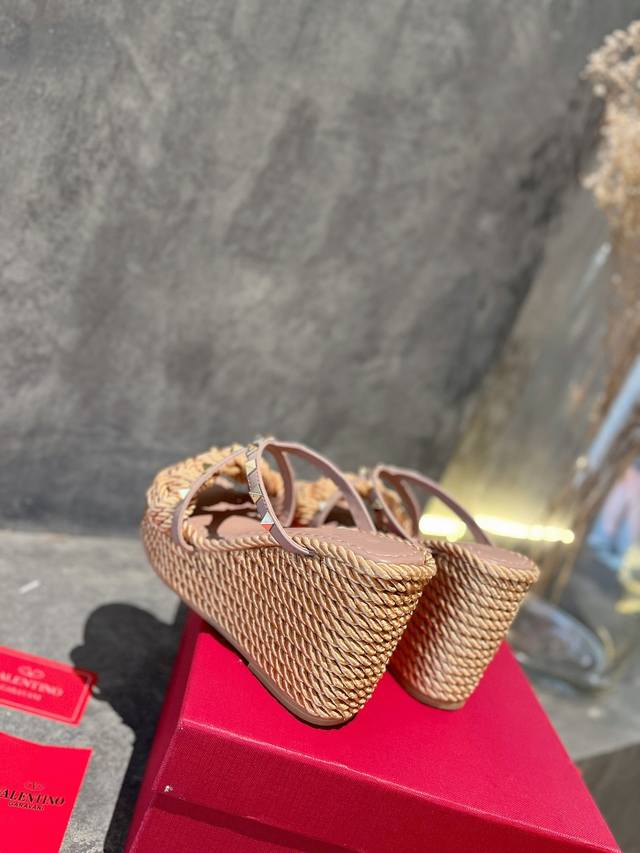 / Valentino华伦天奴 高版本新款铆钉麻绳编织坡跟凉鞋. 简约超级百搭. 上脚完美奢华可任意搭配春夏服饰. 脚感更是舒适! 材质原版完美复刻. 饰扣原版拆解