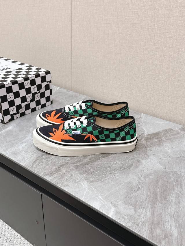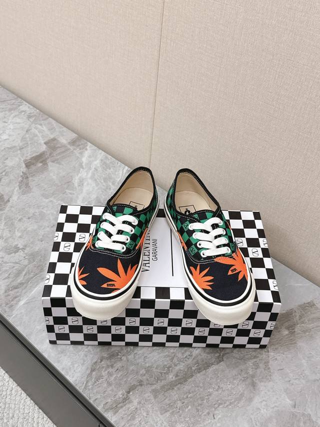 Valentino华伦天奴Vans最新联名款情侣休闲鞋 帆布鞋 超多明星时尚博主种草 整体设计沿用万斯鞋型棋盘格图案华伦天奴经典Logo点缀 满满的高级感 街头风十足 时尚度爆棚~鞋面:原版高定制帆布棋盘格印花 内里:进口定制帆布大底:原版开模定制防滑大底 全套联名包装 码数:女35-40 男39-44