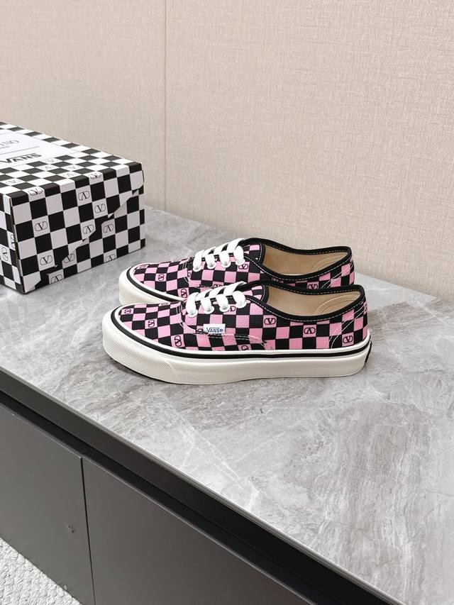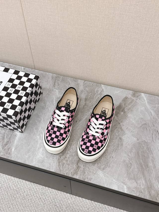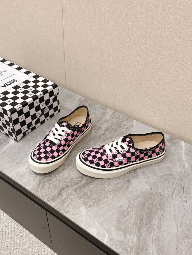 Valentino华伦天奴Vans最新联名款情侣休闲鞋 帆布鞋 超多明星时尚博主种草 整体设计沿用万斯鞋型棋盘格图案华伦天奴经典Logo点缀 满满的高级感 街头风十足 时尚度爆棚~鞋面:原版高定制帆布棋盘格印花 内里:进口定制帆布大底:原版开模定制防滑大底 全套联名包装 码数:女35-40 男39-44