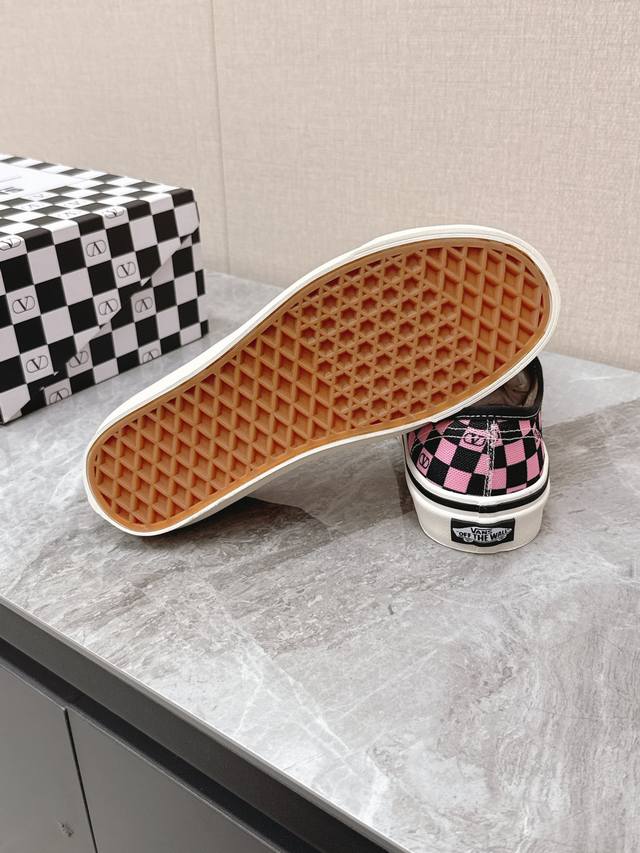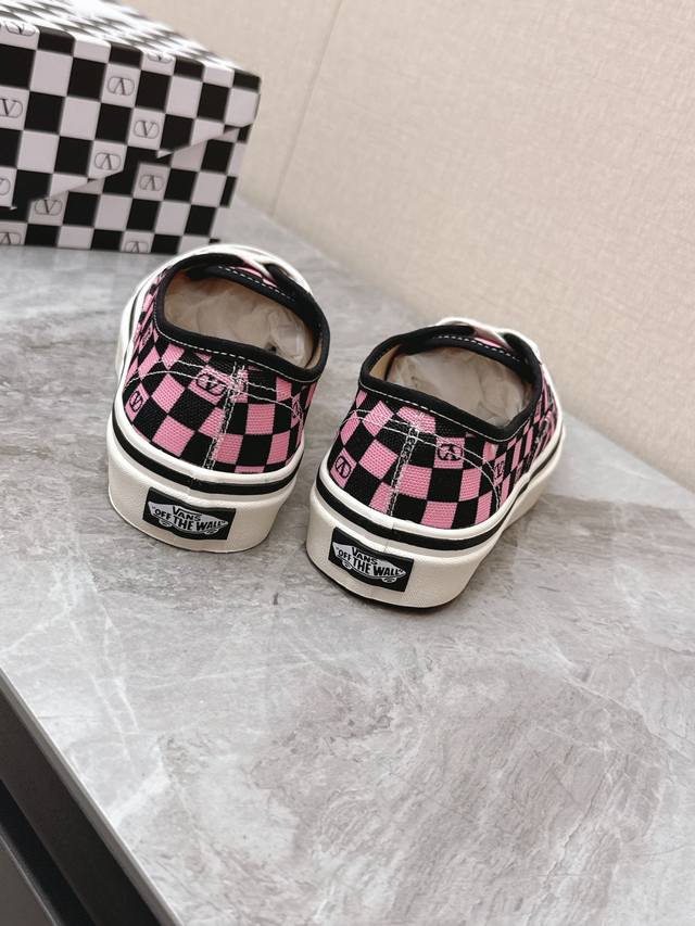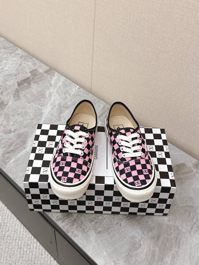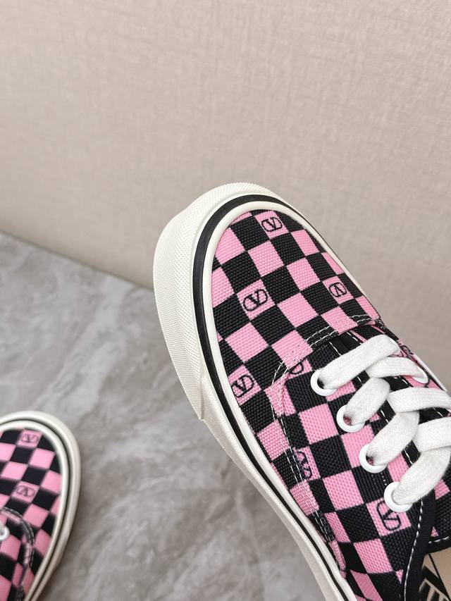 Valentino华伦天奴Vans最新联名款情侣休闲鞋 帆布鞋 超多明星时尚博主种草 整体设计沿用万斯鞋型棋盘格图案华伦天奴经典Logo点缀 满满的高级感 街头