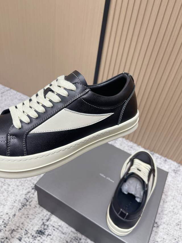 代购级: 男款 DDD 瑞克 欧文斯Rick Owens 25新款 侵权鞋 休闲鞋 暗黑系列 高街必备 DDD 这是一款上线就自带话题的鞋款 发售争议不断 这双鞋也可以说是其它Ro鞋款代替不了的 DDD 简单聊下要说Rick Owens最受欢迎的几款鞋,那“侵权”Vans的“大Vans”肯定榜上有名完全不输“大匡威”的百搭,不管是搭配 Rick Owens自己的单品又或者是走一波现在流行的各种Clean Fit 都完全没问题 特别是皮质鞋款 简约即高级 DDD 鞋面:牛皮 牛反绒皮 DDD 鞋底:Tpu大