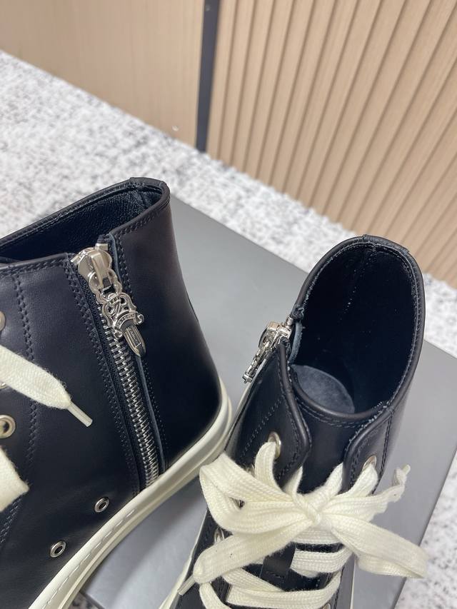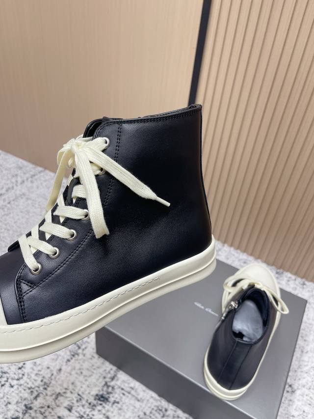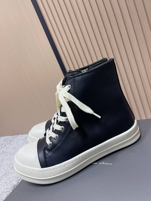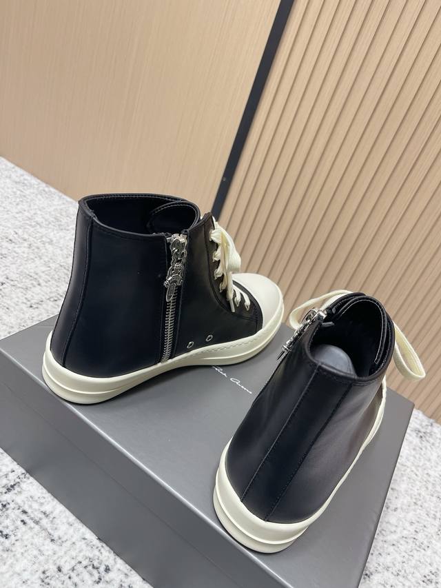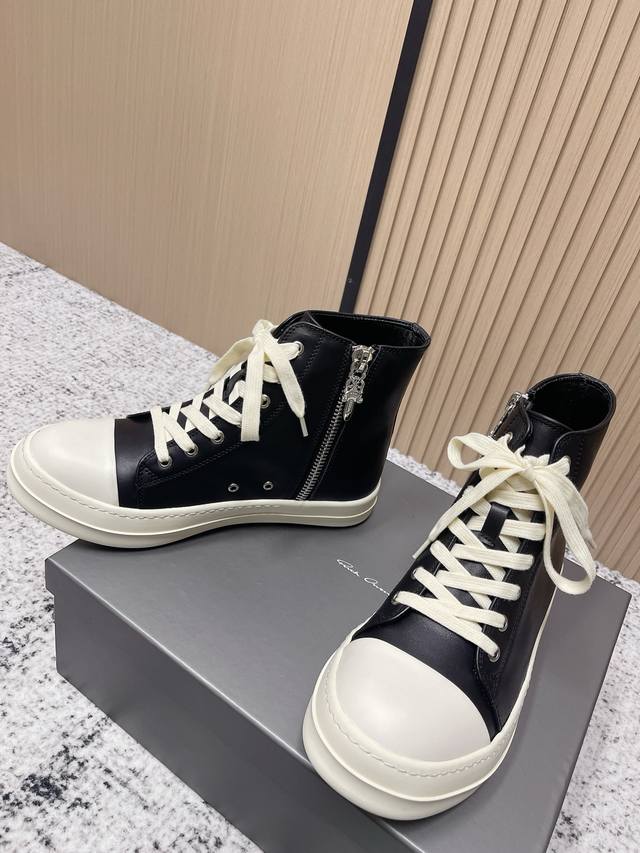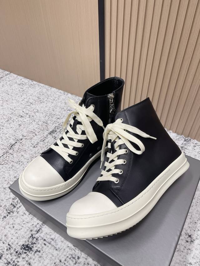 代购级: 男款 DDD 瑞克 欧文斯Rick Owens 25新款 侵权鞋 高帮 休闲鞋 暗黑系列 高街必备 DDD 这是一款上线就自带话题的鞋款 发售争议不断 这双鞋也可以说是其它Ro鞋款代替不了的 DDD 简单聊下要说Rick Owens最受欢迎的几款鞋,那“侵权”Vans的“大Vans”肯定榜上有名完全不输“大匡威”的百搭,不管是搭配 Rick Owens自己的单品又或者是走一波现在流行的各种Clean Fit 都完全没问题 特别是皮质鞋款 简约即高级 DDD 鞋面:牛皮 马毛 DDD 鞋底:Tpu