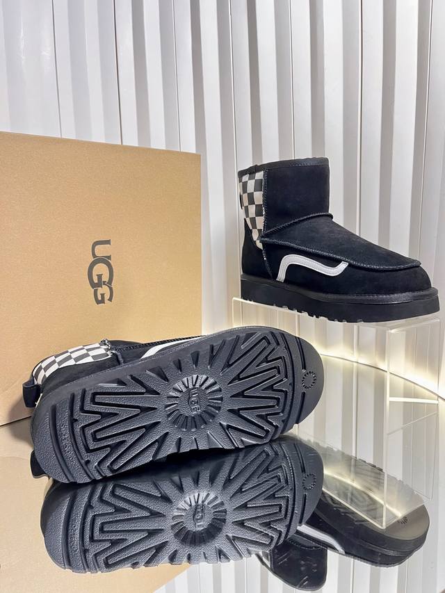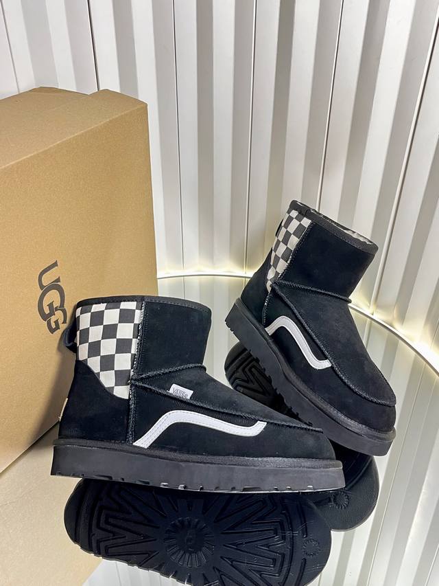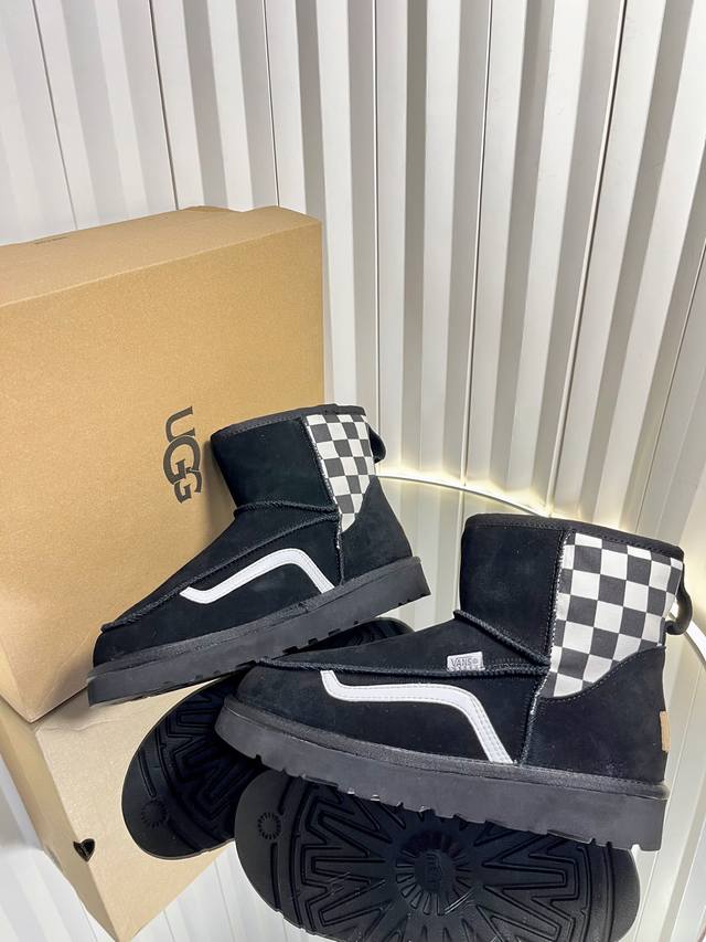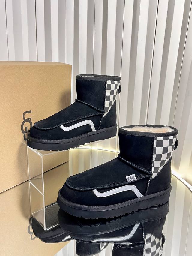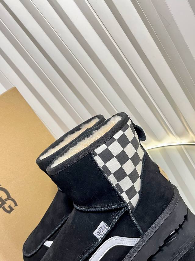 代购级 DDD 运动版Ugg 联名 Vans 万斯25Ss 秋冬保暖带 雪地靴 DDD 鞋面采用翻毛皮材质,内里填充羊毛,实现保暖与质感的结合。中筒靴型搭配侧边扣带设计,既提升了造型的时尚感,又可根据穿搭需求调节靴筒形态,如翻折变换风格。厚底设计兼具增高效果,适合冬季抗寒场景,能适配休闲、街头等多种穿搭风格。 DDD Ugg 以羊皮毛一体雪地靴闻名,此类带扣款式属于品牌经典产品线的延伸,既保留了“温暖舒适”的核心基因,又通过金属扣等细节增强时尚属性,常成为秋冬季节明星、潮流达人的搭配选择。 DDD 鞋面: