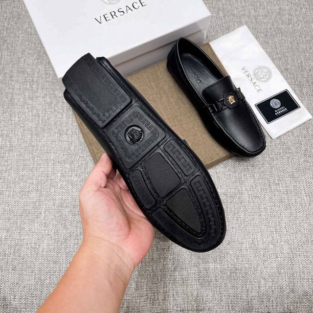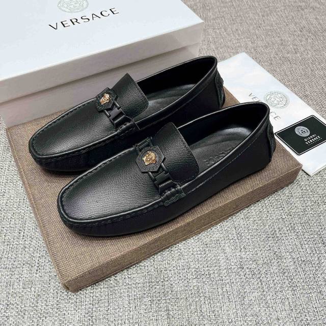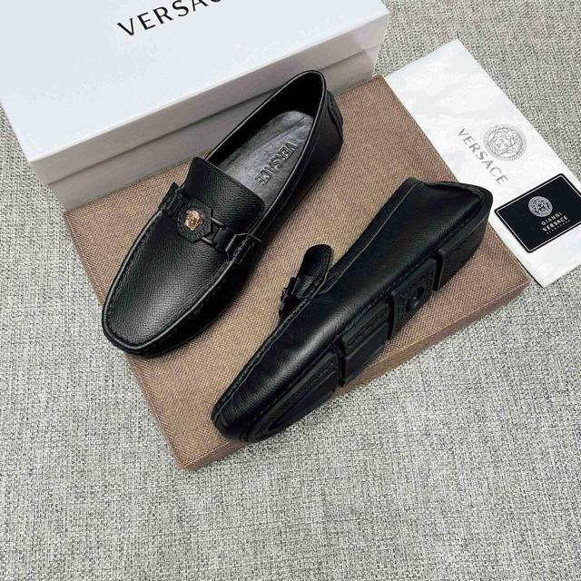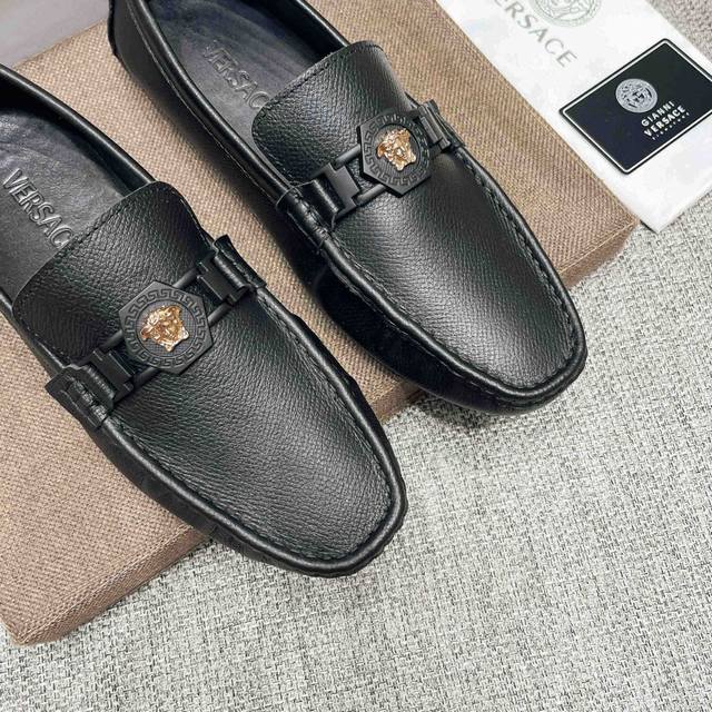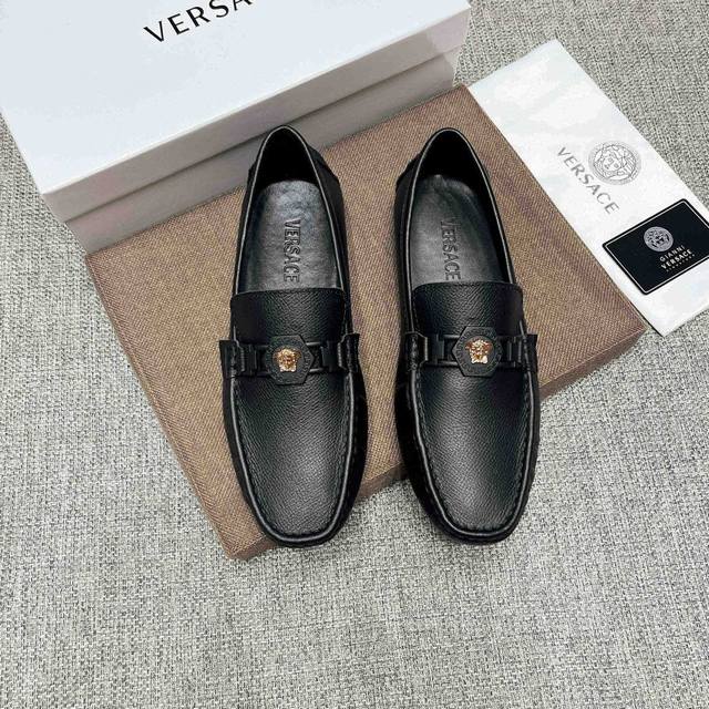 Verace 范思哲官网男士四季休闲商务豆豆鞋,最新元素潮爆全球,官网火爆热卖,原版版本,专柜爆款,鞋面意大利进口原版头层牛皮性感美灶莎头像金属扣,原版防滑大底