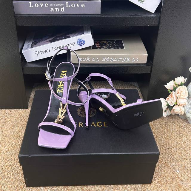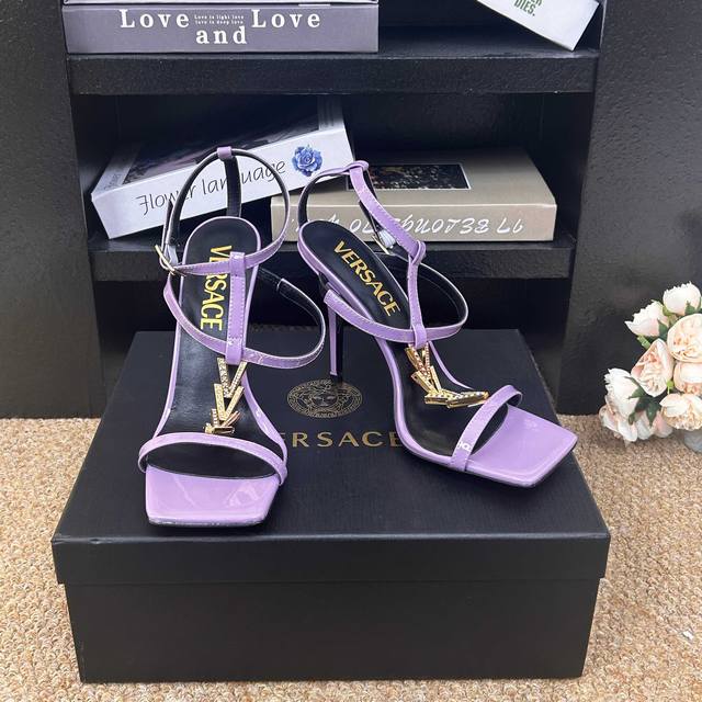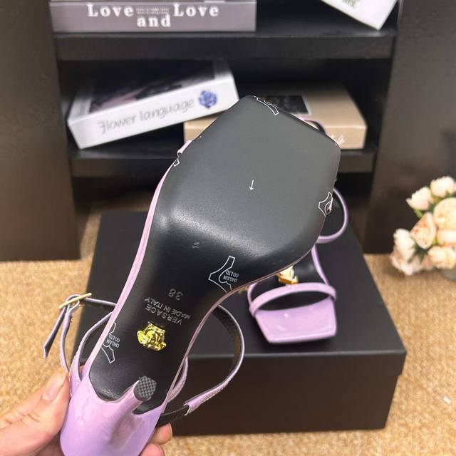 FFF Versace范思哲 6 Gianni Ribbon 美杜莎V扣凉鞋 正面饰V型链接扣镶钻配方头头型 DDD _______________________ DDD 海外热销冠军 DDD Yb一致原鞋开发楦型 各大时尚博主及明星、网红、已经人手一对,如此出众的美,让人过目不忘! DDD DDD Go 材质: DDD 鞋面:牛漆皮 DDD 内里垫脚:进口优质山羊皮 DDD 跟高:10.5Cm DDD 鞋底:意大利Italy牛皮大底 DDD 码数:- 42定制不退换 DDD 包装:全套原版包装 DDD