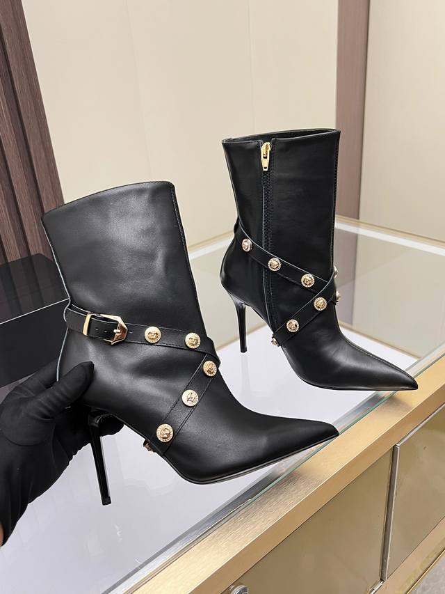 码数:35-41码,可定做42码 DDD 范思哲新款真皮高跟靴,面料牛皮,羊皮内里,羊皮垫脚,耐磨止滑,橡胶大底。 DDD 根高:10.5公分 DDD 靴筒高度:28厘米 DDD