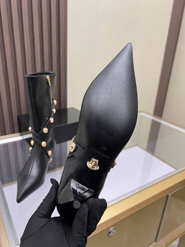 / 码数:35-41码,可定做42码 范思哲新款真皮高跟靴,面料牛皮,羊皮内里,羊皮垫脚,耐磨止滑,橡胶大底。 根高:10.5公分 靴筒高度:28厘米