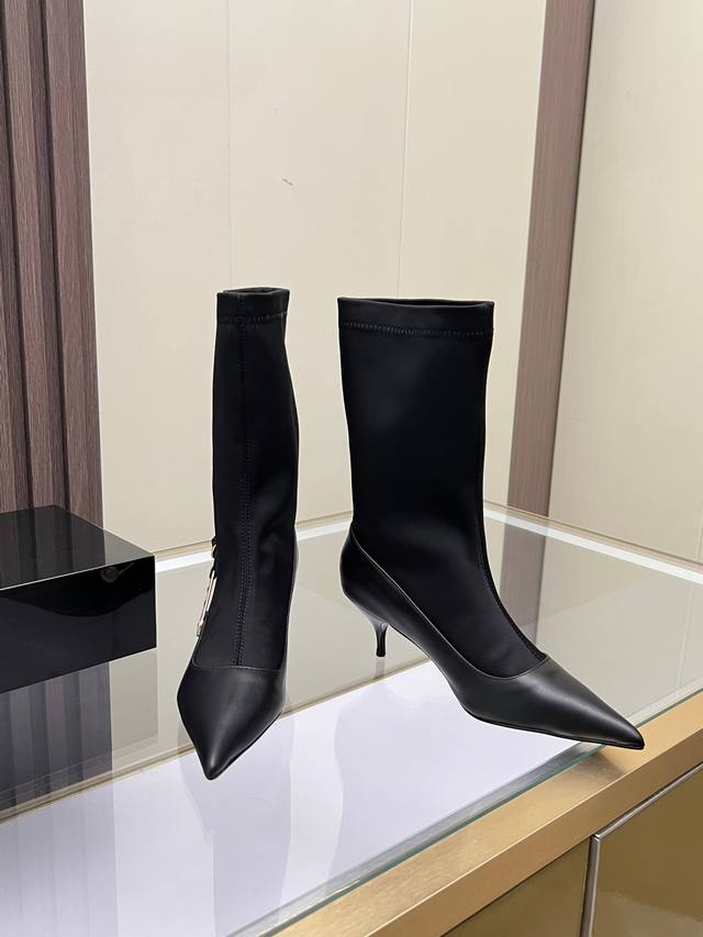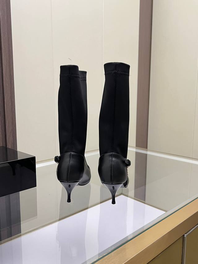 / 码数:35-41码,可定做42码 范思哲新款矮跟女靴,面料牛皮十弹力布,羊皮内里。羊皮垫脚,橡胶底 靴筒高度:30.5厘米 跟高:6厘米