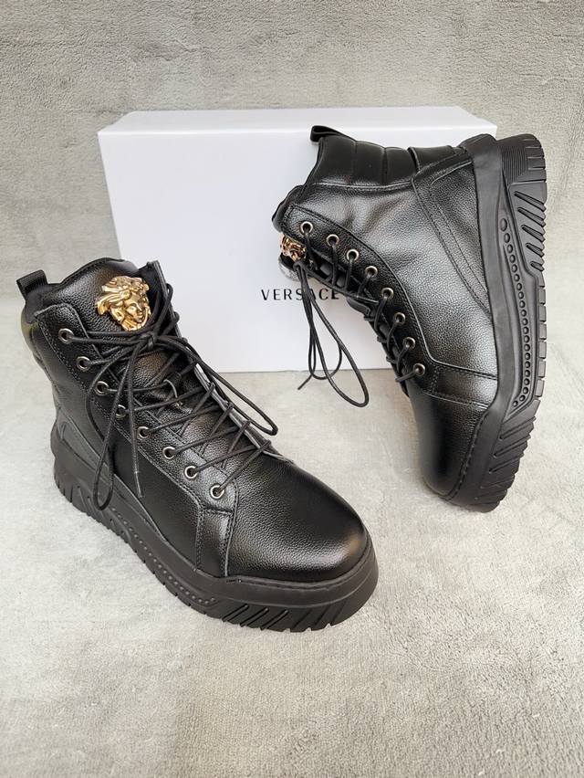 Versace 高帮范思哲 经典 首发时尚百搭男士鞋,....作为时尚界的活跃一族 为中国时尚潮男打造出这款时尚简洁男鞋 鞋面料采用进口小牛皮.皮里踮脚。干净利落 时尚大方...原代工厂P特供真皮防滑耐磨橡胶品牌大底 经典时尚百搭系列!品质看的见 码数38-44,45.46 定做