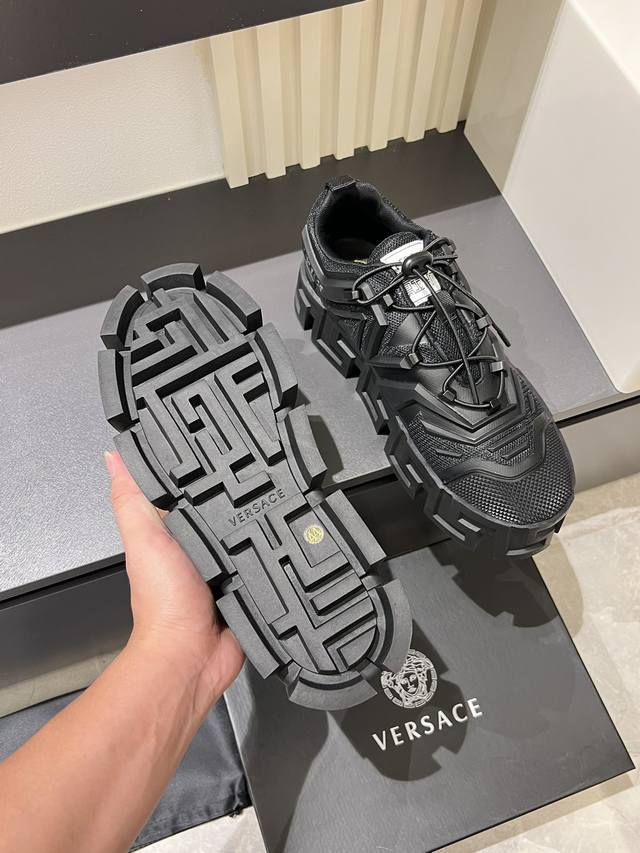 Versace Odissea新款机器人运动鞋,设计以雕塑感设计重新演绎 男士风格,这款针织织物Cloudbust Thunder运动鞋廓形饱满,并配有轻质橡胶Oversize 橡胶厚底,格外抢眼。搭配橡胶饰片和轻质橡胶厚鞋底,独具时尚个性风格 Size:38-44 45定做 DDD