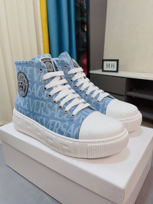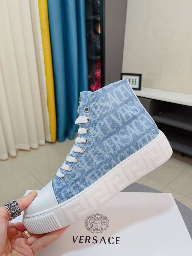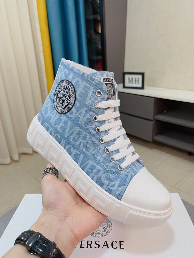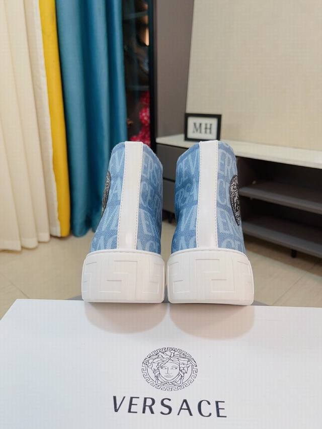 FFF 出厂价P Versace 高帮范思哲 巴黎时装走秀款!专柜同步上市!进口电绣材料搭配头印花布料鞋舌范思哲车标设计内里采用头层真皮皮,绝对的奢华打造,引领时尚新概念。配码:38-44 DDD