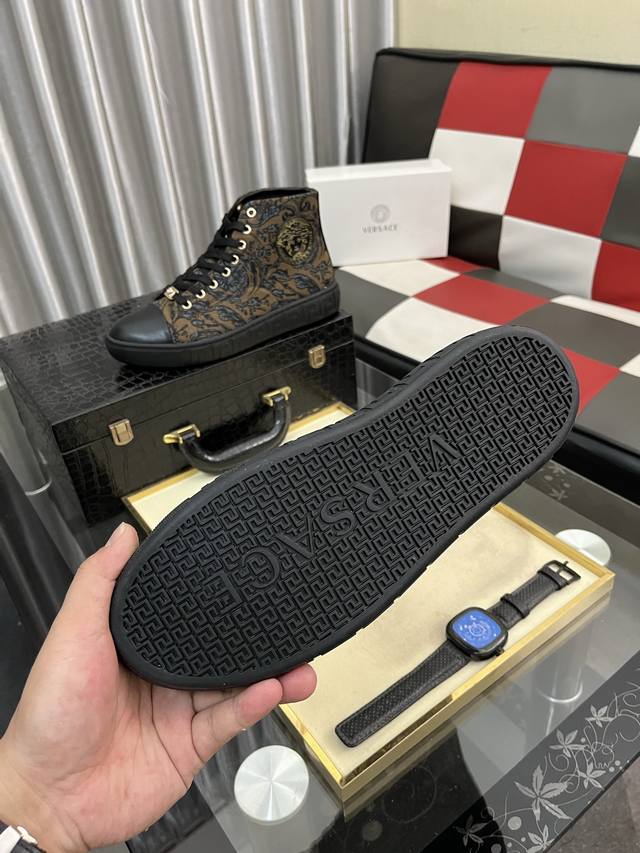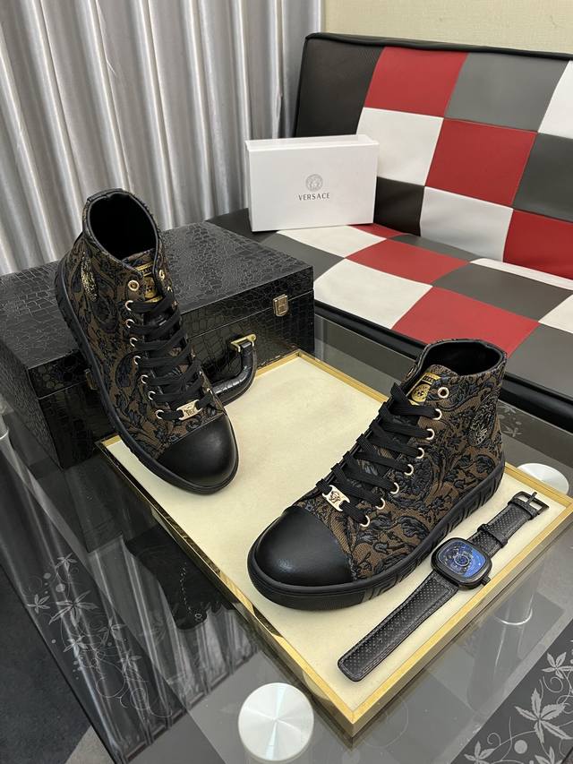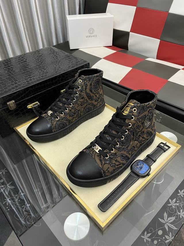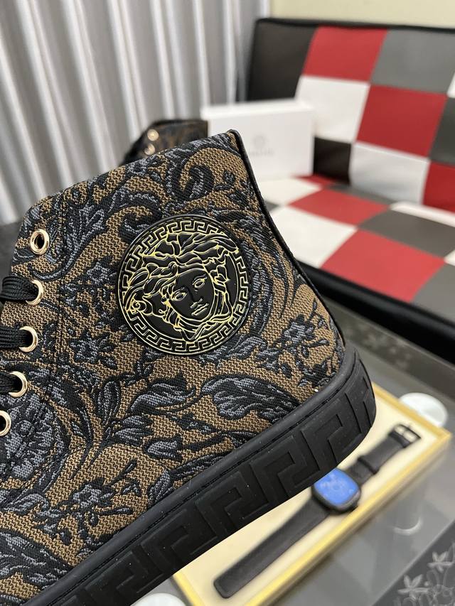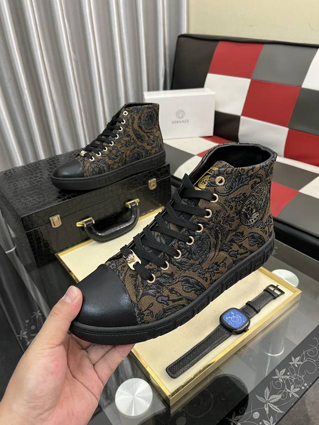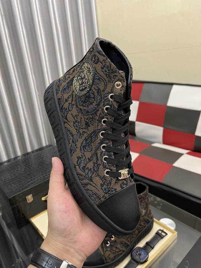 / 出厂价pp: 范思哲 男士高帮新款最新爆款休闲鞋,顶端品牌 奢侈 鞋面選用进口品牌印花面料+牛皮,透气内里+猪皮垫脚 精细做工。个性时尚耐磨大底,上脚轻巧舒适,