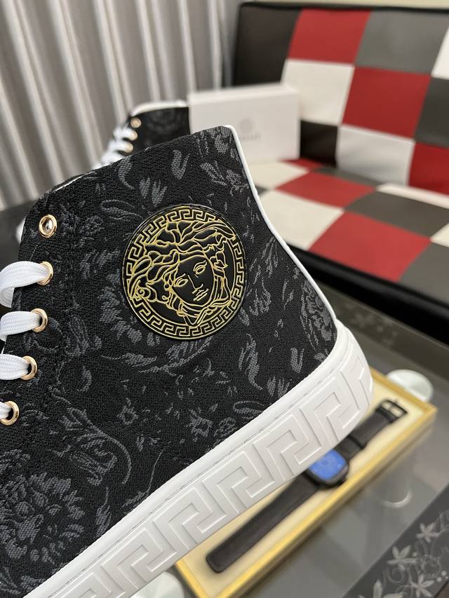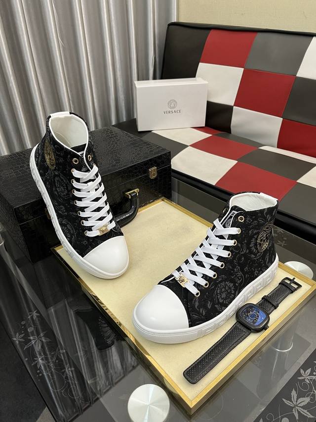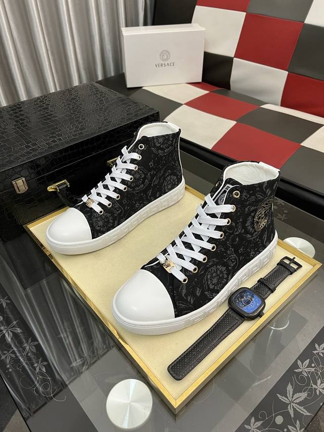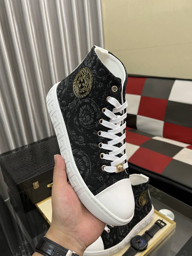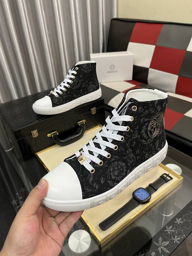 / 出厂价pp: 范思哲 男士高帮新款最新爆款休闲鞋,顶端品牌 奢侈 鞋面選用进口品牌印花面料+牛皮,透气内里+猪皮垫脚 精细做工。个性时尚耐磨大底,上脚轻巧舒适,