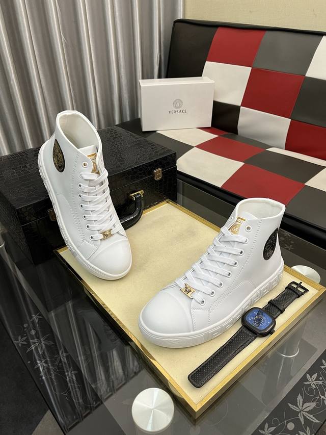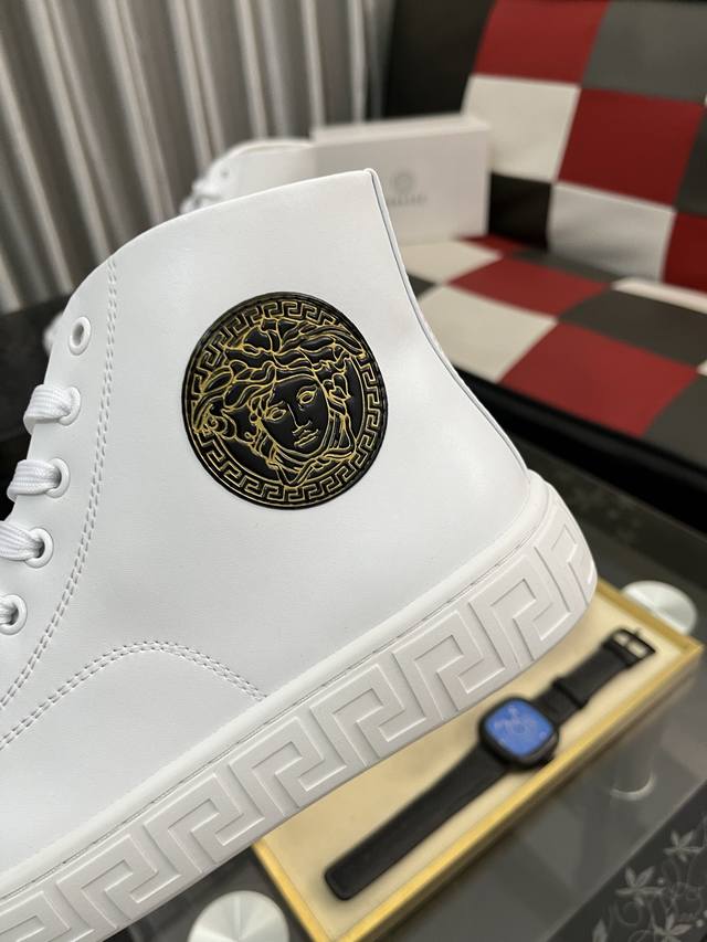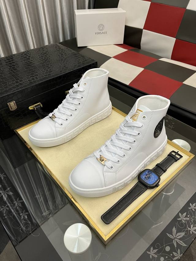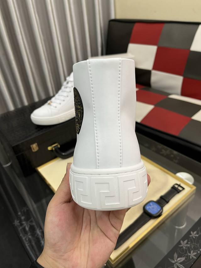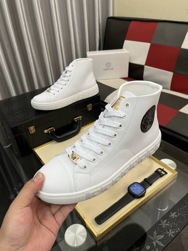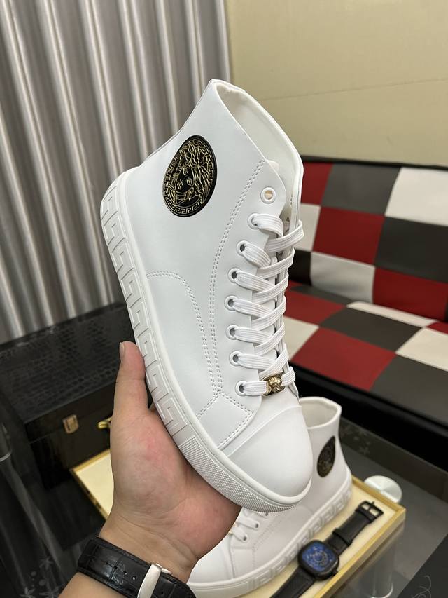 出厂价pp: 范思哲 男士高帮新款最新爆款休闲鞋,顶端品牌 奢侈 鞋面選用进口品牌印花面料+牛皮,透气内里+猪皮垫脚 精细做工。个性时尚耐磨大底,上脚轻巧舒适,