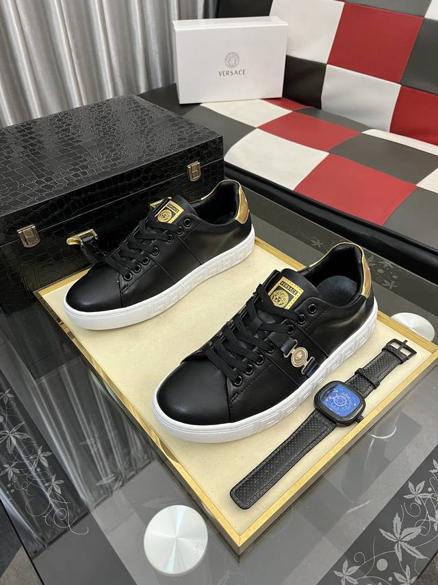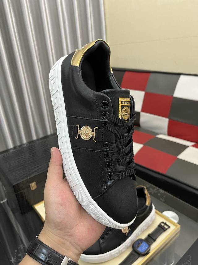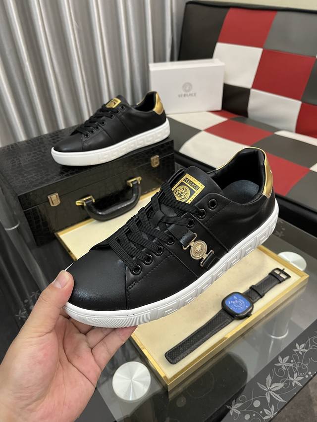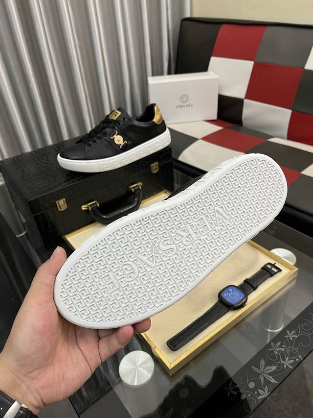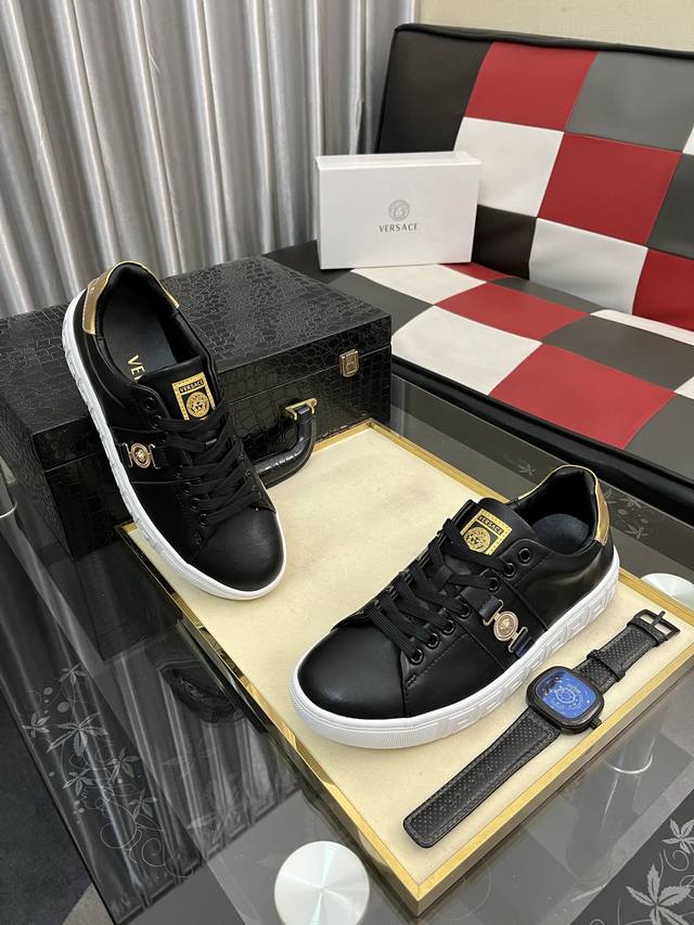 新款: 厂价 范思哲Versace* 最新爆款休闲鞋 顶端品牌 奢侈 代购 顶级 质量 鞋面選用进口透气牛皮材质透气猪皮垫脚 精细做工...