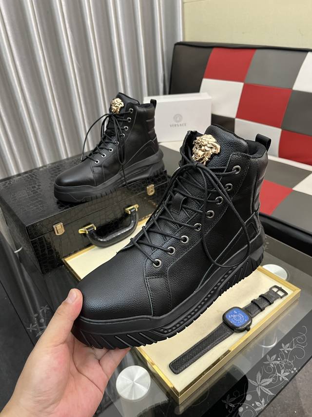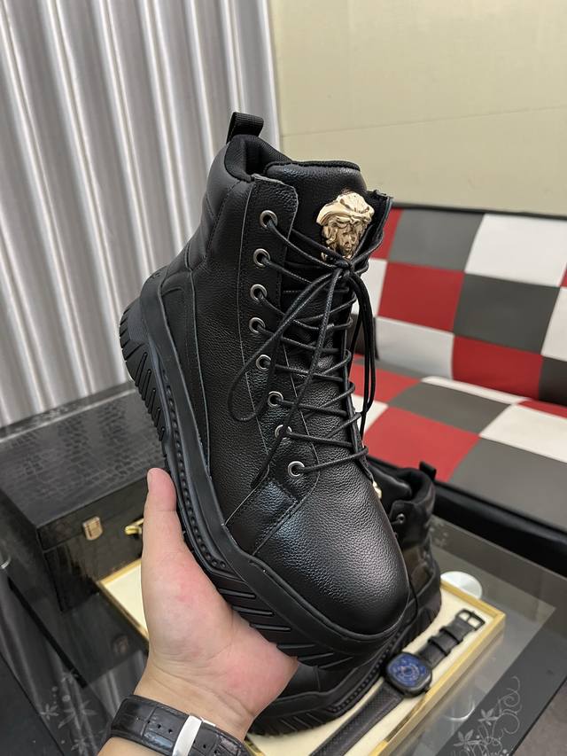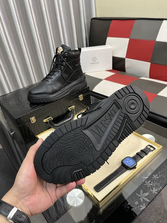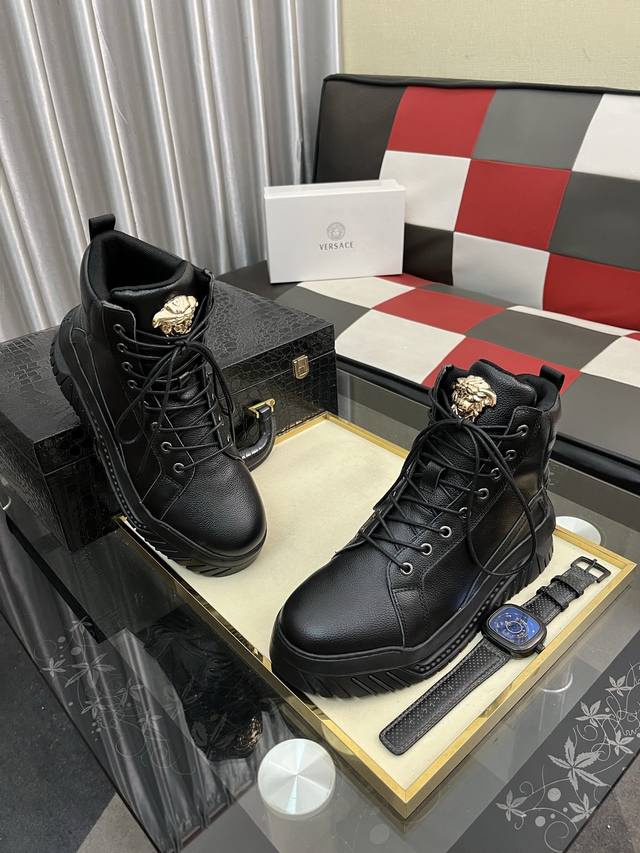 出厂价pp: Versace 范思哲时尚男鞋奢华品质,设计师在每一期都专业打造出范思哲每一款休闲鞋靴风格不一。鞋面采用意大利进口牛皮拼接,舒适网里上脚舒适。给你