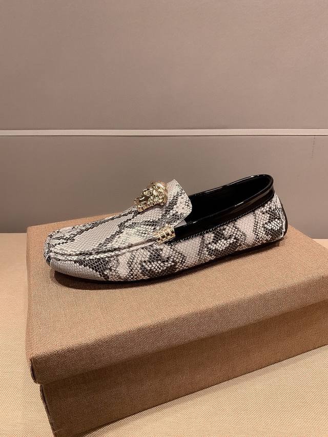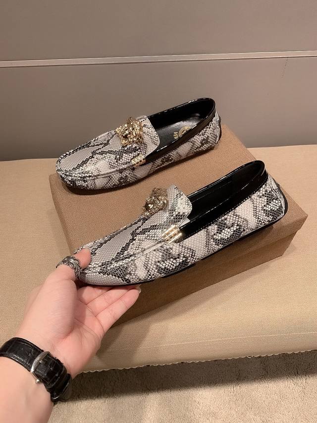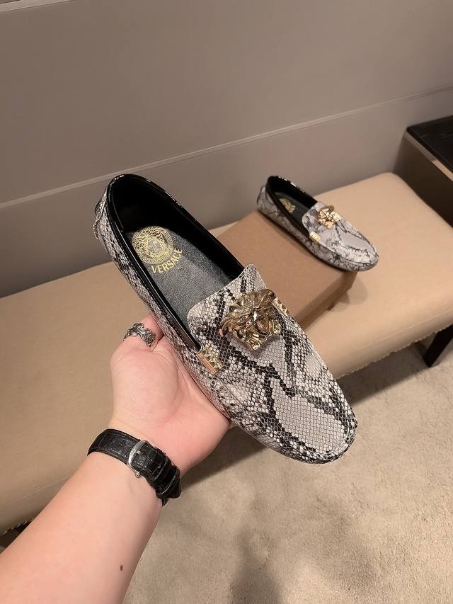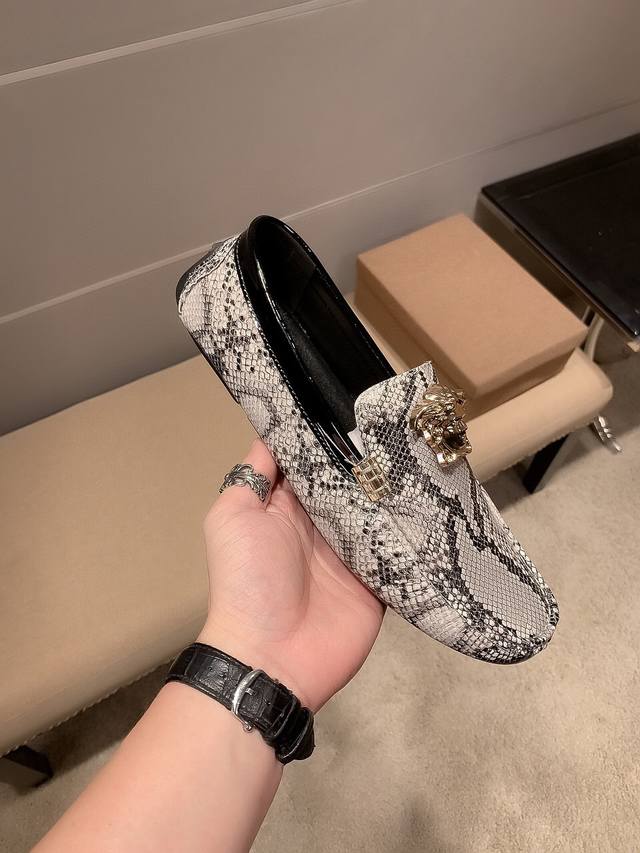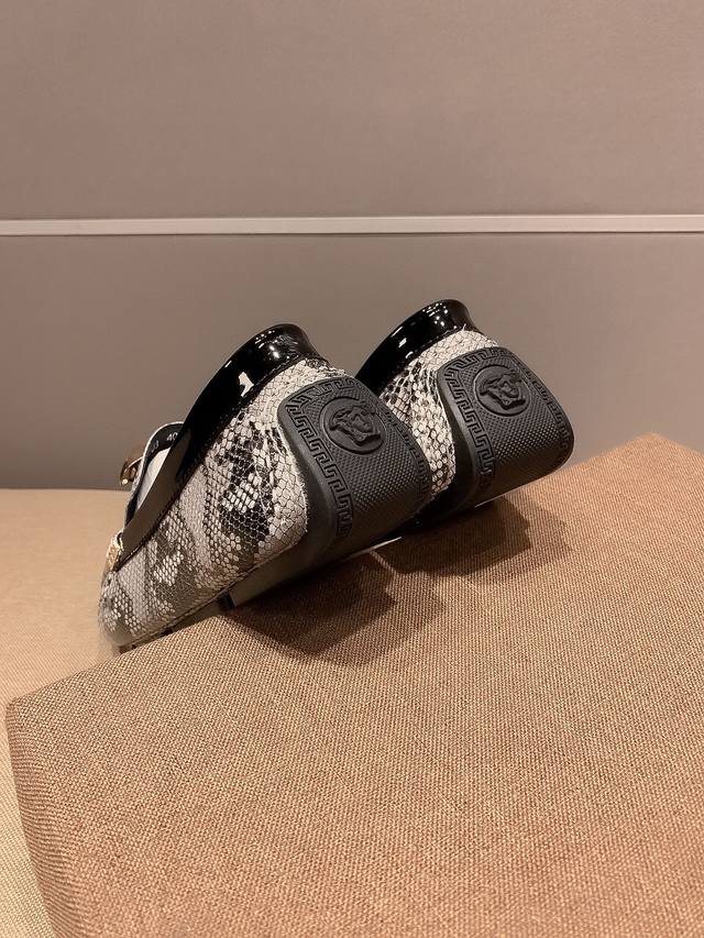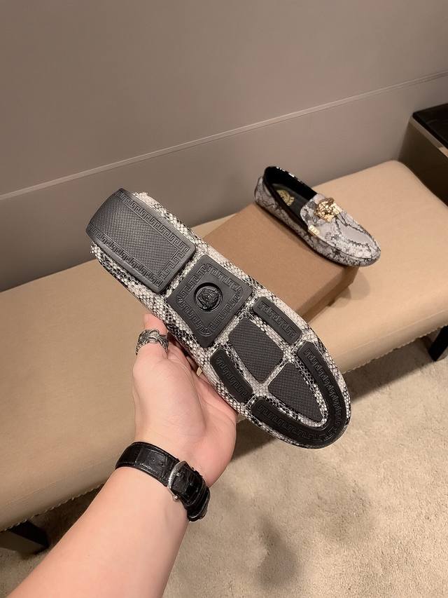 FFF 品牌范思哲,官网新款,鞋面意大利蟒蛇皮,高端大气上档次,头层牛里真材实料,原版进口耐磨橡胶底, 官网出品 精致优雅男士心备佳品,采用精湛工艺。穿着舒适。精致简单鞋面尽显品牌低调优雅,适合四季衣橱,无论是专心致志地工作,与家人共度闲暇时光,还是在城市或乡间体验高雅的生活方式,该系列均可彰显真正的男性魅力。 [奋斗]标准码37~47 DDD