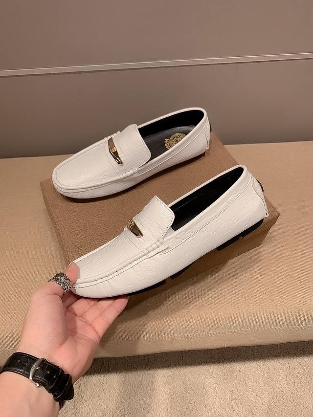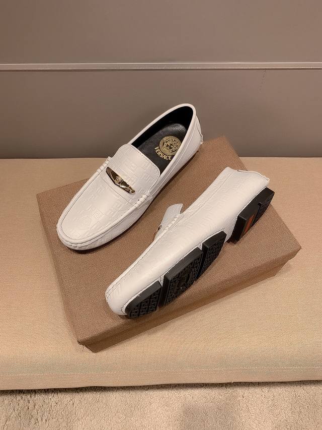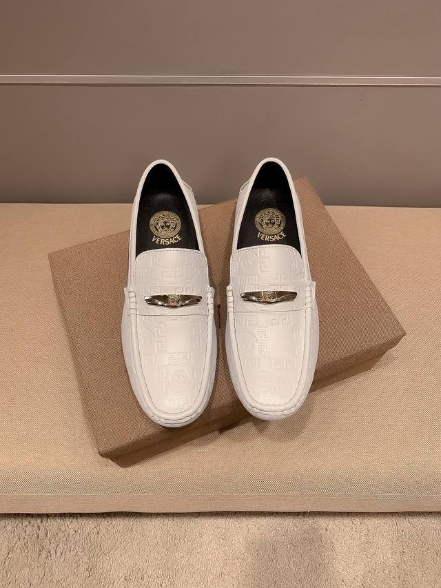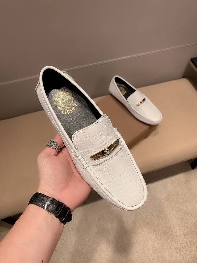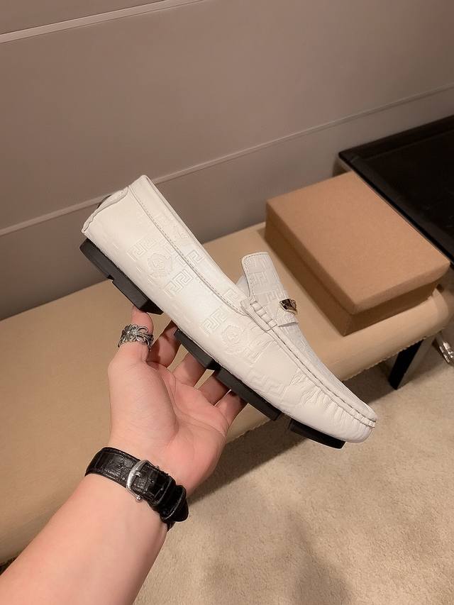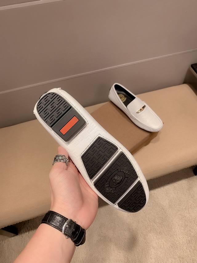 实价 , Versace 官方首发意大利男士高端商务豆豆鞋,原单正品,鞋面进口头层驼鸟皮,舒适吸汗透气羊里 不染色...