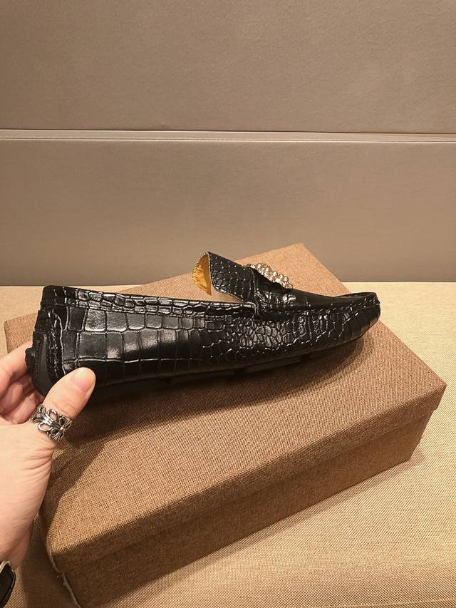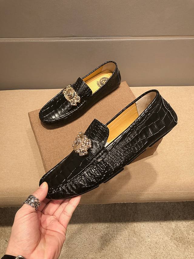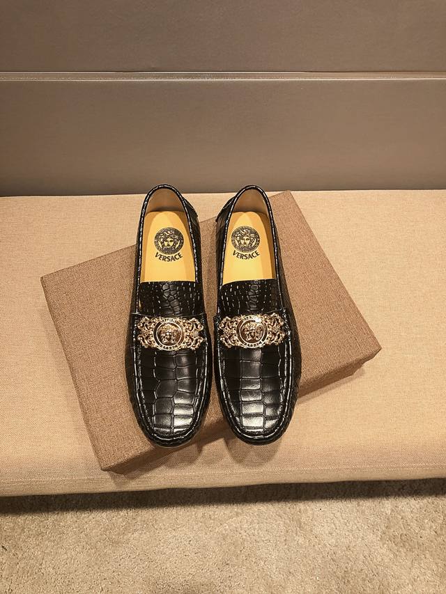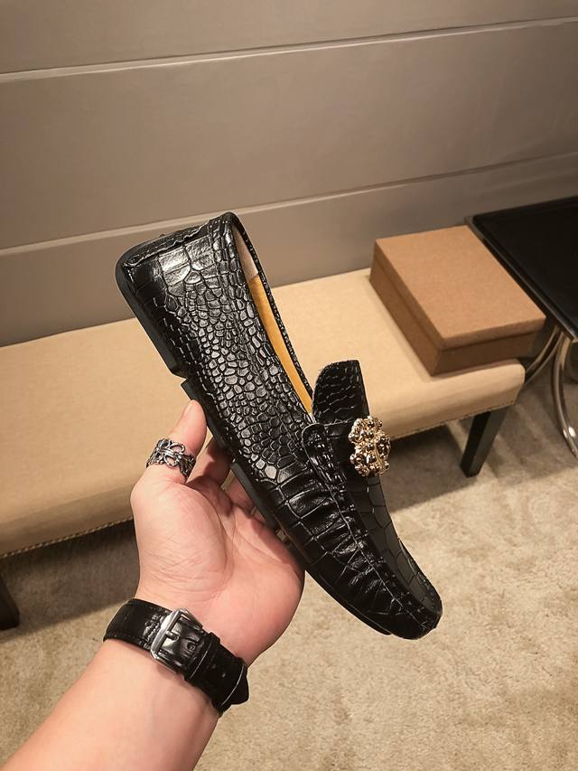 / 品牌范思哲, 牛皮里 ,鞋面采用头层鳄鱼皮+美杜莎性感头像,男士的最爱,舒适透气牛里真材实料,原版进口耐磨橡胶底, 范思哲官网出品 精致优雅男士心备佳品,采用精