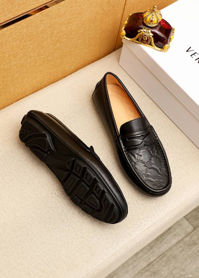 Versace官网首发意大利男士潮流高端豆豆鞋,官网1:1原版复刻!鞋面进口头层牛反绒牛皮,头层吸汗舒适牛里 真材实料...