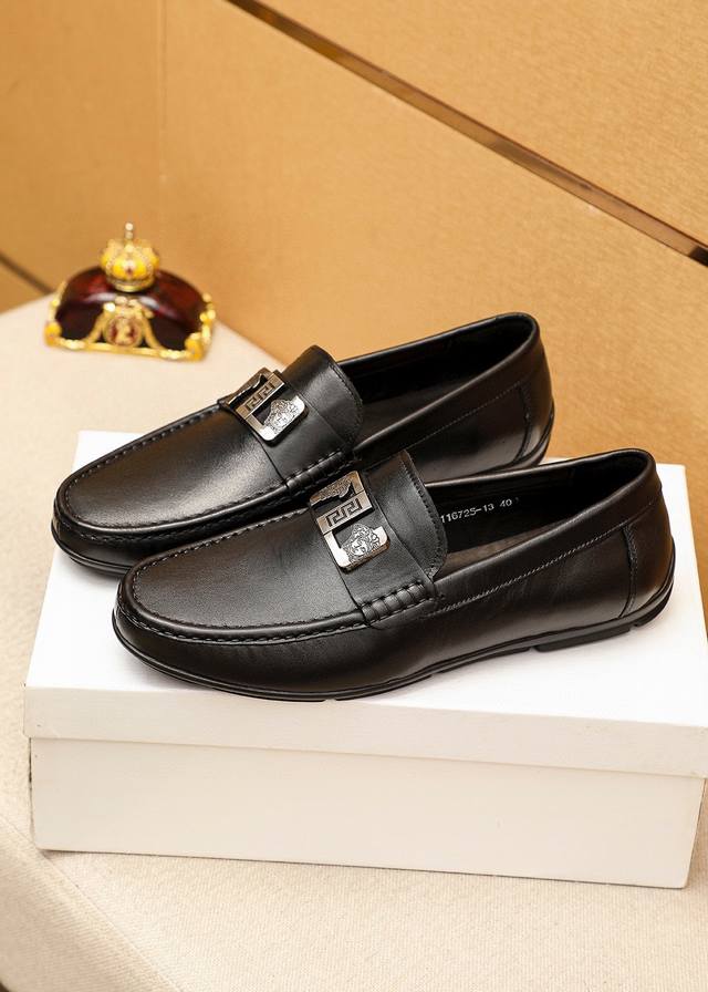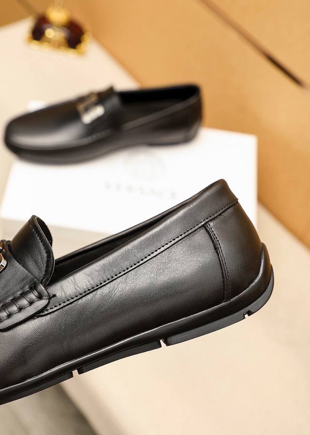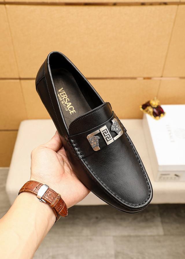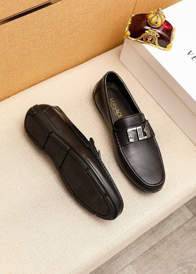 / 商品商标:Versace 范思哲 豆豆鞋 正码码数: 39-44 38.45订制 商品材料:精选 进口小牛皮鞋面+奢华五金扣,进口水染猪皮内里。强烈立体视觉效果