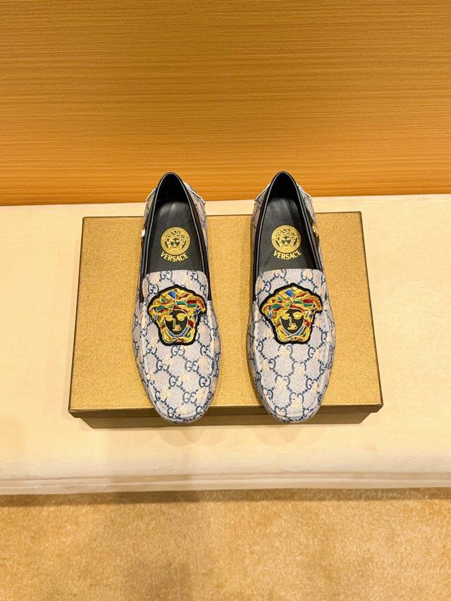 FFF 官方新款,范思哲古奇联名版,全球限量38双,官方首发,此款曾经被官方首说最牛的合作精神,巴黎街头名模爆款,官网最新款休闲商务豆豆鞋,鞋面采用原版进口头层磨砂牛皮+刺绣,透气舒适牛里真材实料,法国殿堂级尊贵款售价25880瑞士法郎,法国巴黎时装周走秀款 ,一个品牌可以深植内心 ,一双鞋也可以让你流连忘返,穿出的不仅仅是尊贵,更是一种气场标准37-47, DDD