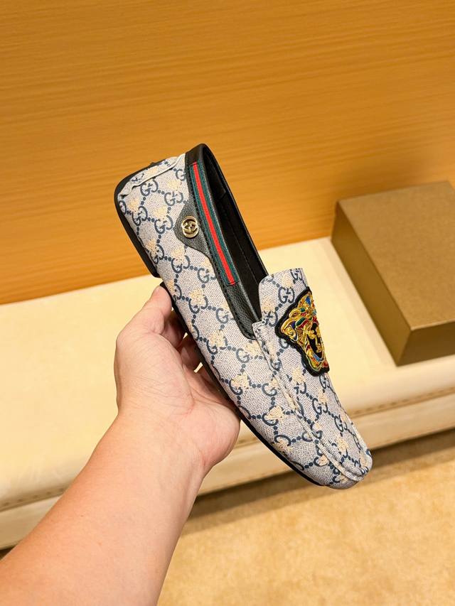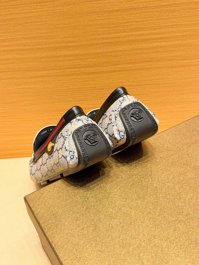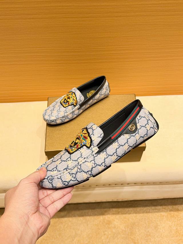 / 官方新款,范思哲古奇联名版,全球限量38双,官方首发,此款曾经被官方首说最牛的合作精神,巴黎街头名模爆款,官网最新款休闲商务豆豆鞋,鞋面采用原版进口头层磨砂牛皮