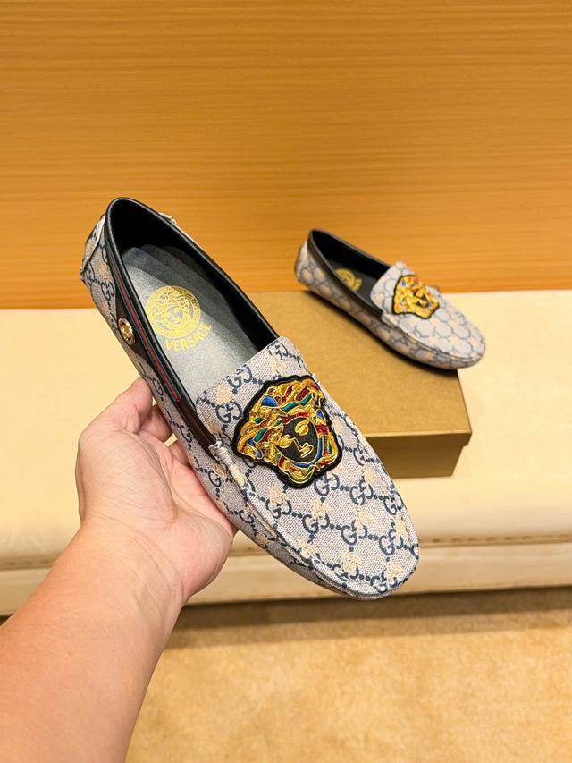 官方新款,范思哲古奇联名版,全球限量38双,官方首发,此款曾经被官方首说最牛的合作精神,巴黎街头名模爆款,官网最新款休闲商务豆豆鞋,鞋面采用原版进口头层磨砂牛皮