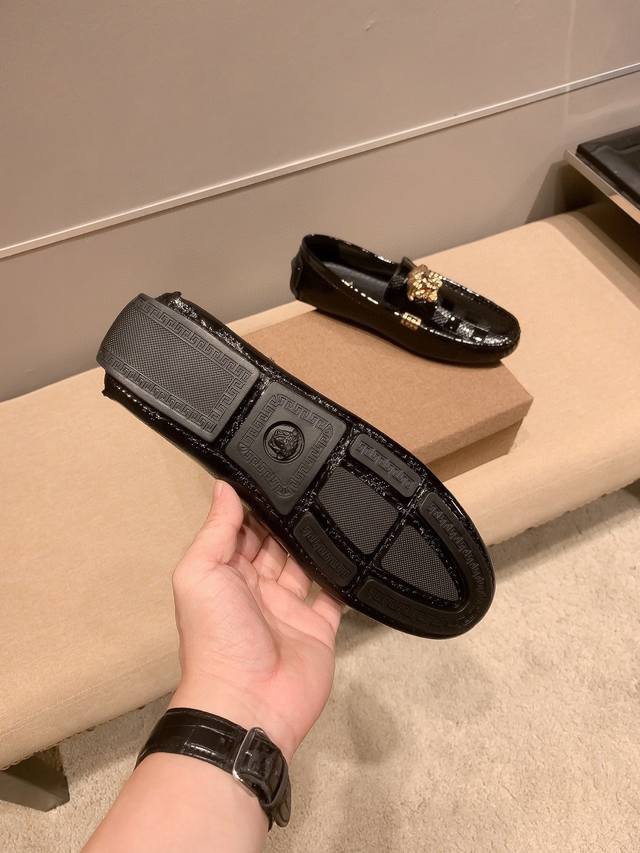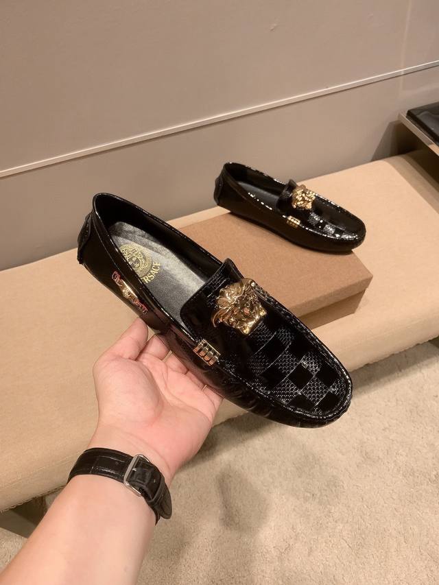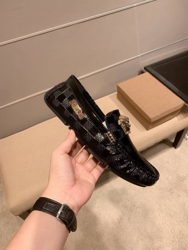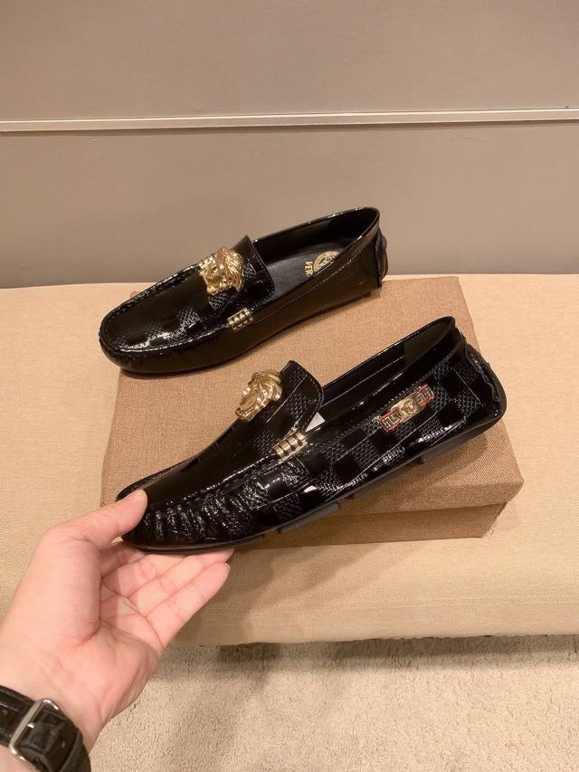 全球抢购最高品质 范思.哲Versae 经典低帮懒人开车鞋 霸气Logo更是重金打造 材料:进口头层小牛皮电绣,猪皮内里...