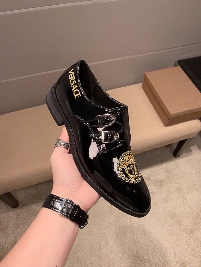 实价 ,品牌范思哲,官方旗舰店正品,范思哲又一次惊世之作腾空出世,惊艳全场 不一样的品质,不一样的高贵。西班牙进口头层小牛漆皮,头层羊内里,鞋面金属铁扣+范品哲品牌刺绣两者完美融合,高端霸气,范思哲以卓越品质,精湛工艺 ,杰出创意成为时尚旅行艺术的象征...你值得拥有不一样的现代男士魅力 只卖懂货的你标准38-45 DDD