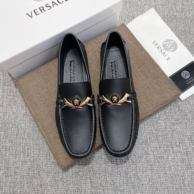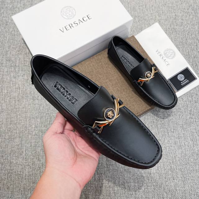 实价 ,品牌Versace 范思哲官,高端、新款,意大利名模贵族们爆款,Versace时尚界的佼佼者,无可超越,官网高品质精品高端豆豆鞋。适合驾车,休闲,白领,商务,懒人男士首选,明星同款,原单正品,采用进口原版头层牛皮,原版舒适透气午里 真材实料 ,法国殿堂级尊贵款售价25880瑞士法郎,法国巴黎时装周走秀款 ,一个品牌可以深植内心 ,一双鞋也可以让你流连忘返,穿出的不仅仅是尊贵,更是一种气场标准37-46