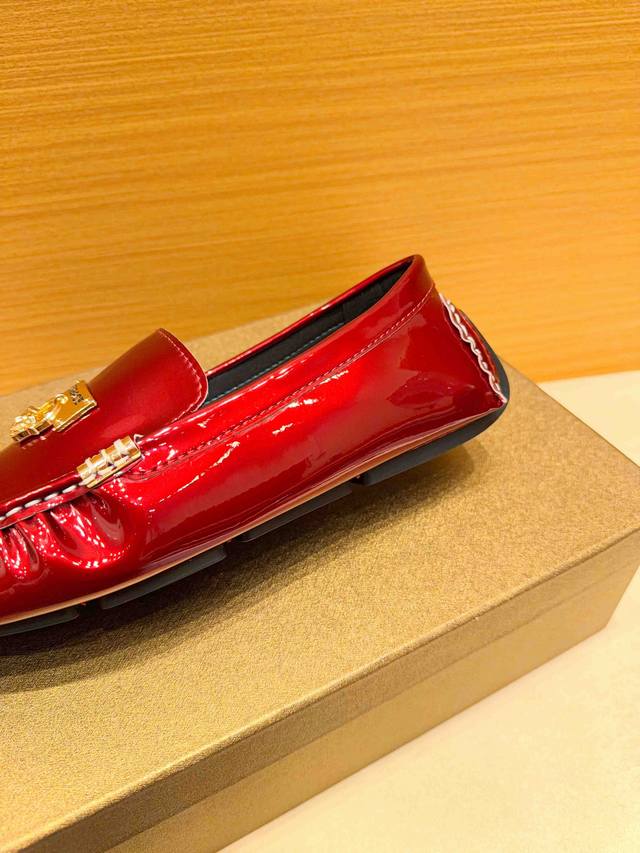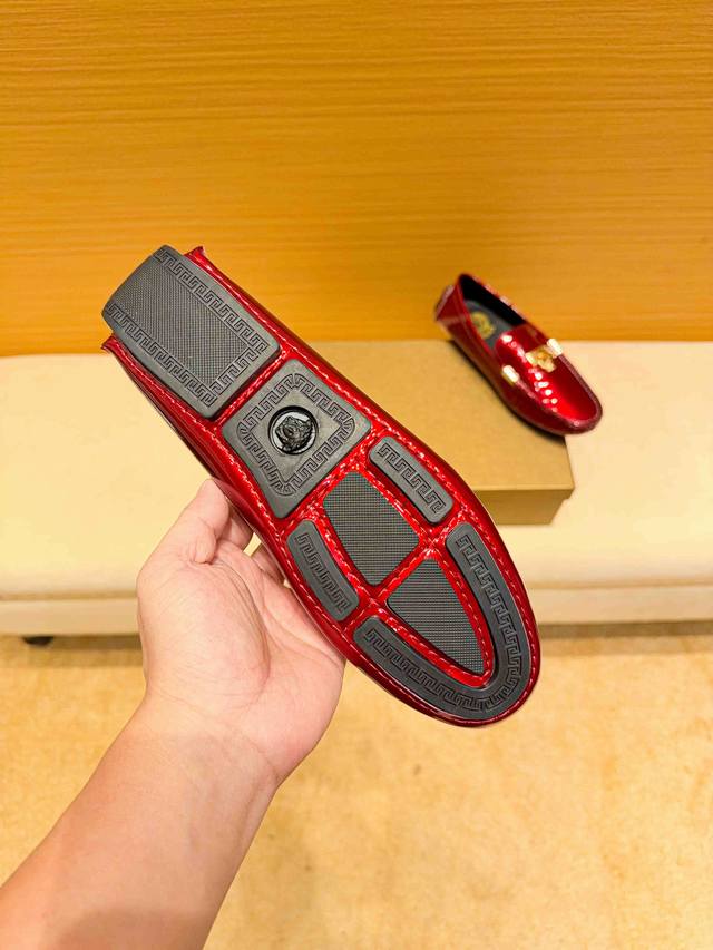 / 实价 ,喜庆红色,牛里 真材实料 范思哲 官网原版新款高端商务休闲驾车豆豆鞋,意大利名模贵族们爆款,时尚界的佼佼者,无可超越,明星同款,鞋面采用进口原版牛漆皮+