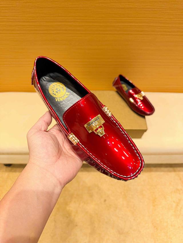 实价 ,喜庆红色,牛里 真材实料 范思哲 官网原版新款高端商务休闲驾车豆豆鞋,意大利名模贵族们爆款,时尚界的佼佼者,无可超越,明星同款,鞋面采用进口原版牛漆皮+原版牛里 真材实料 ,法国殿堂级尊贵款售价25870瑞士法郎,此款是法国巴黎时装周走秀款 ,一个品牌可以深植内心 ,一双鞋也可以让你流连忘返,穿出的不仅仅是尊贵,更是一种气场标准37-47 DDD