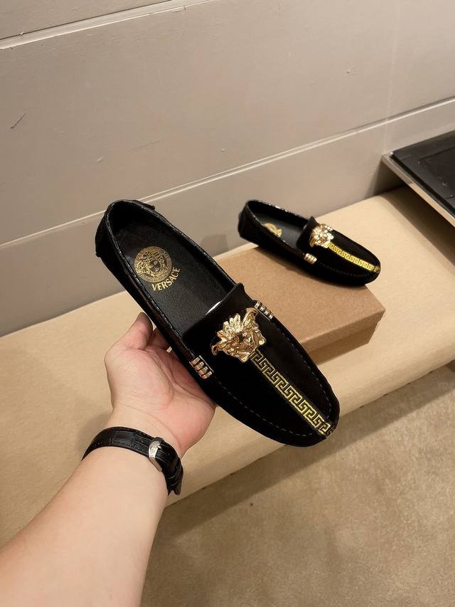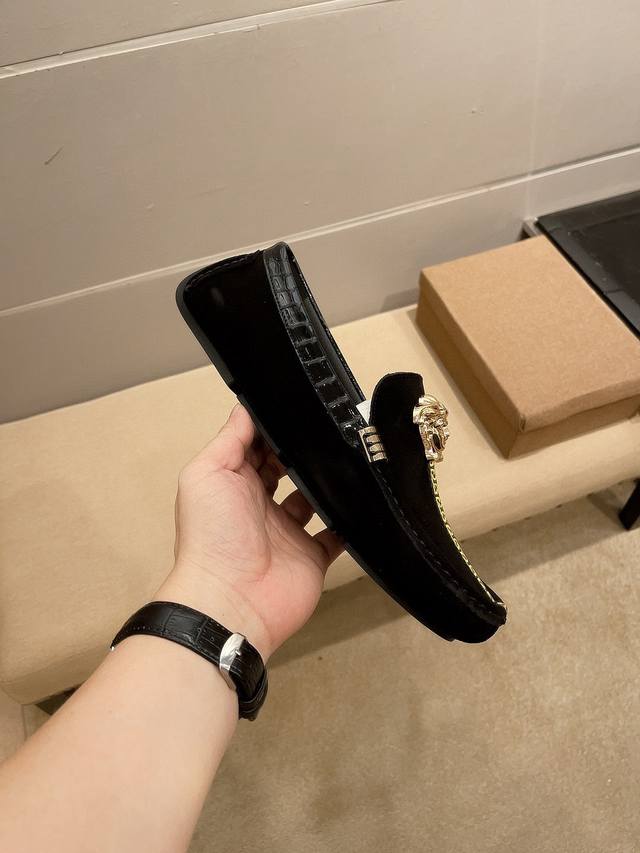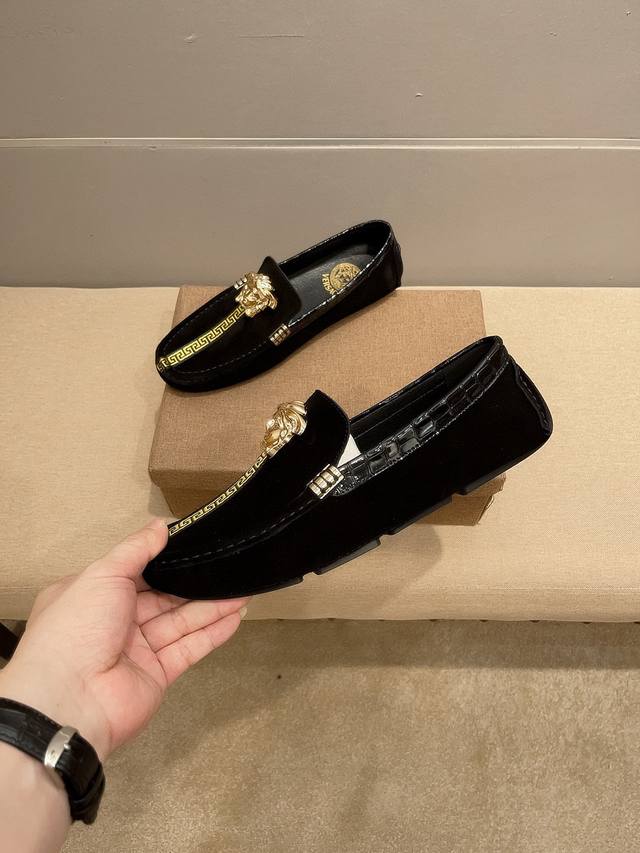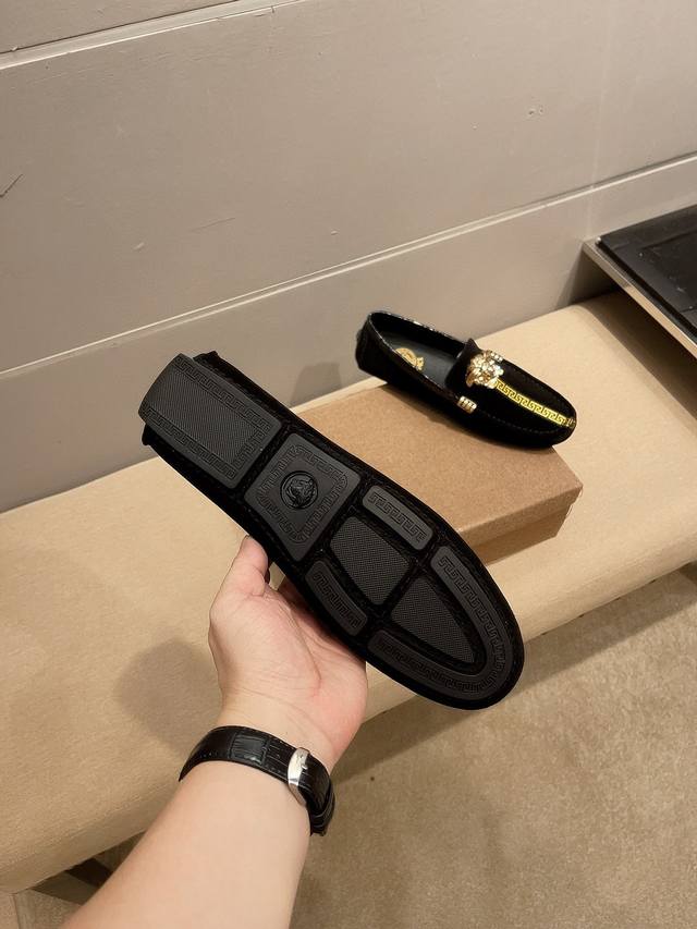 / 实价 Verace 范思哲官方旗舰店男士四季商务休闲豆豆鞋,最新元素潮爆全球,官网火爆热卖,原版版本,专柜一比一,鞋面意大利进口原版头层磨砂牛皮性感美灶莎头像金