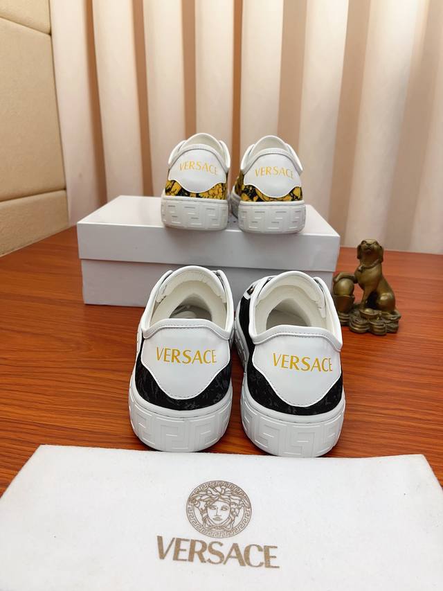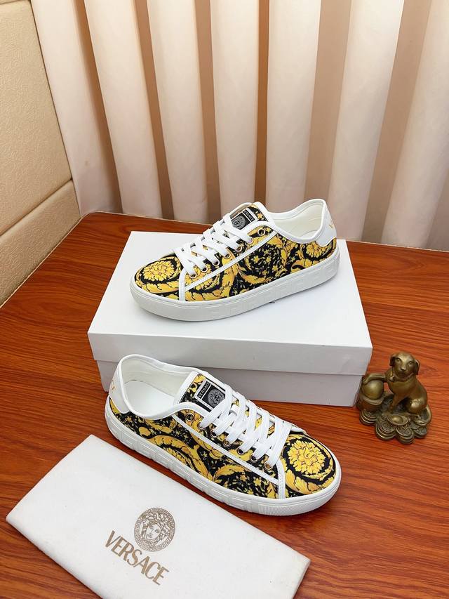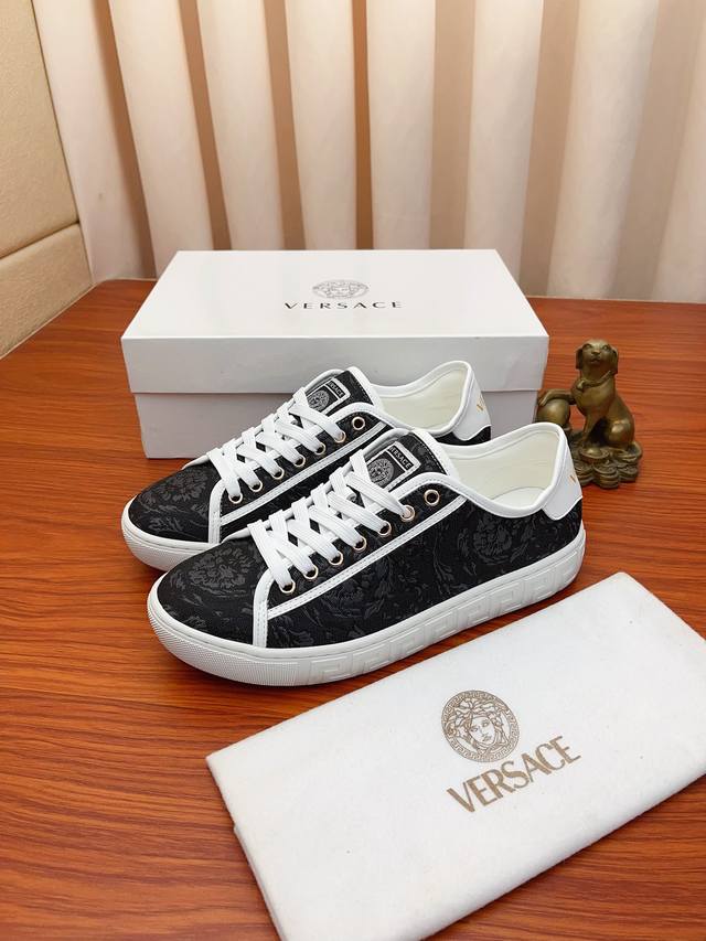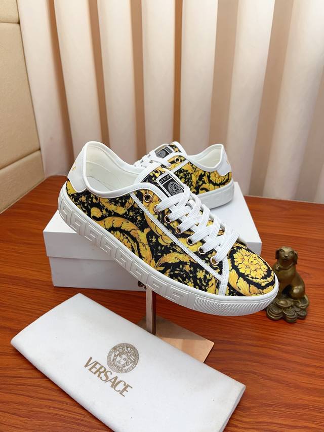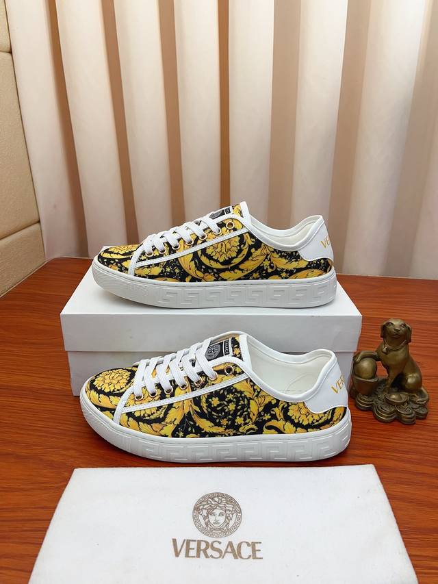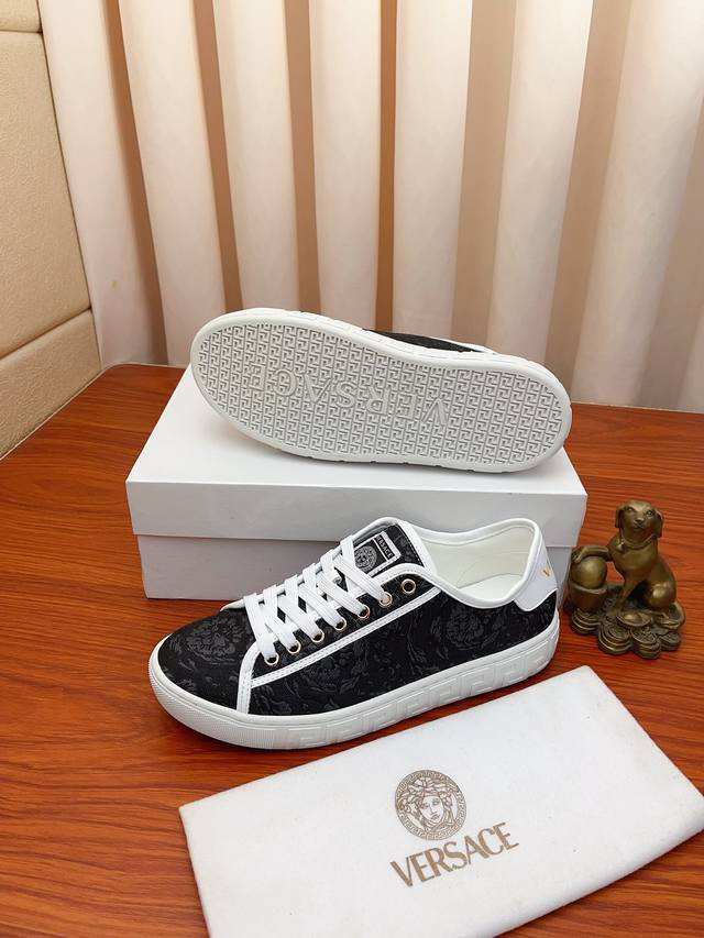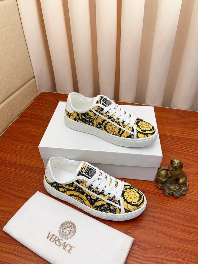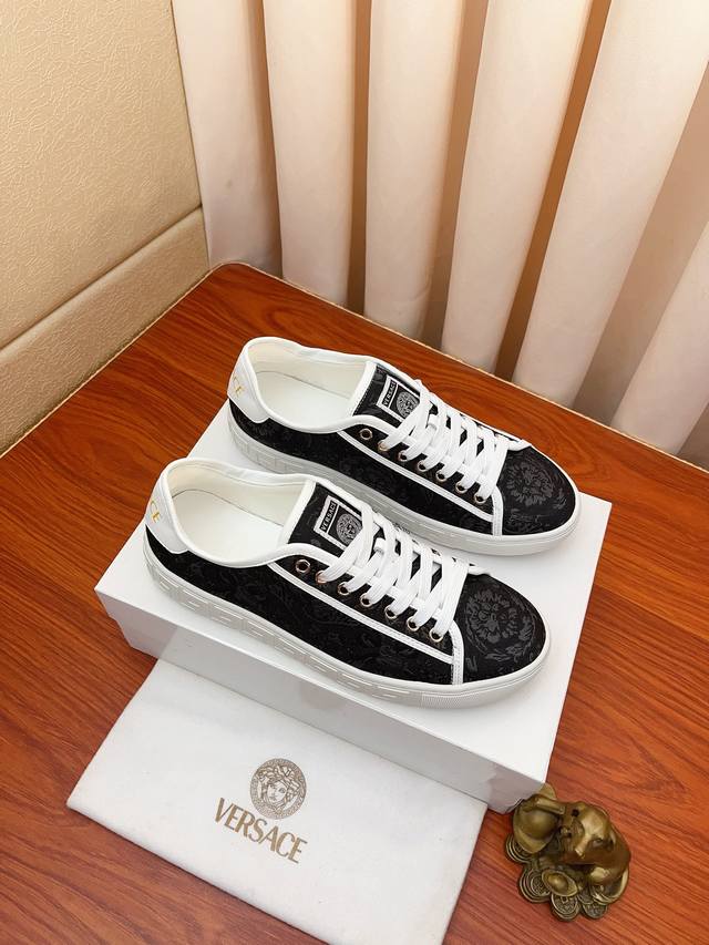 实价: Versace 范思哲最新款精心打造,引爆全场!不断创新的国际品牌 此款男士四季款休闲鞋,印花布料鞋面羊皮内里橡胶防滑大底,透气舒适以质量说话 码数:38-44