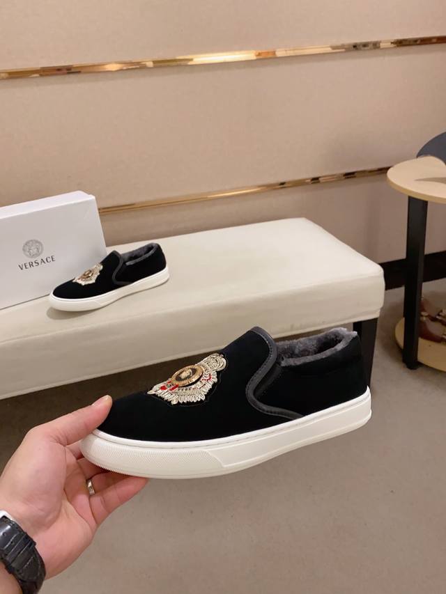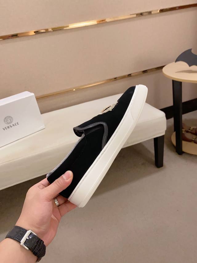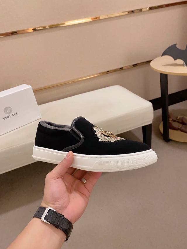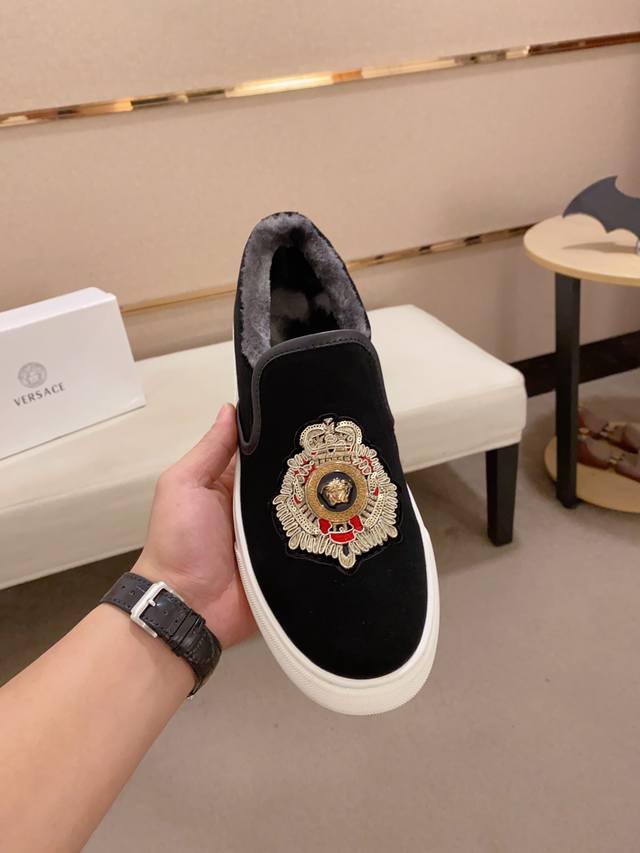 工厂p价 新款Versace 范思哲 鞋面进口牛皮。内里进口绒毛内里 。原版大底开模,每一位男士的身份衬托,上脚大气稳重高端定制专柜原版复刻不管风吹雨打鞋楦不变,经得起时间的验证, 码数:38-44 DDD