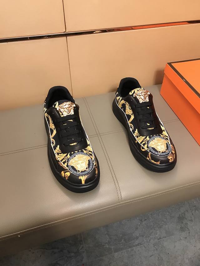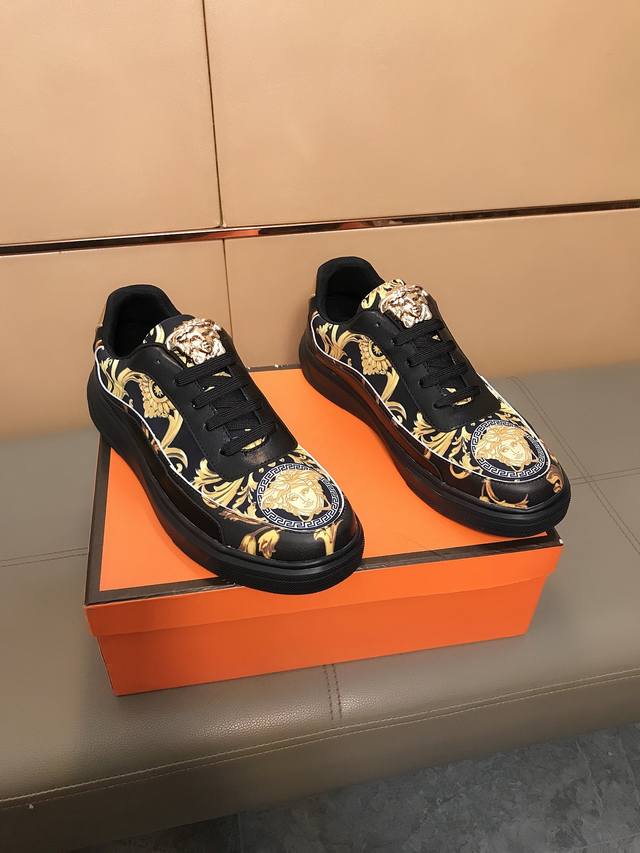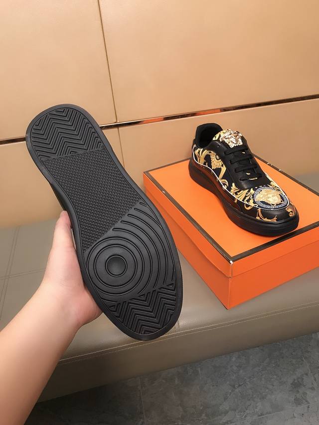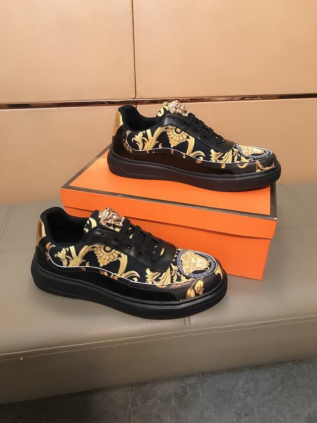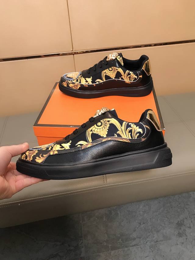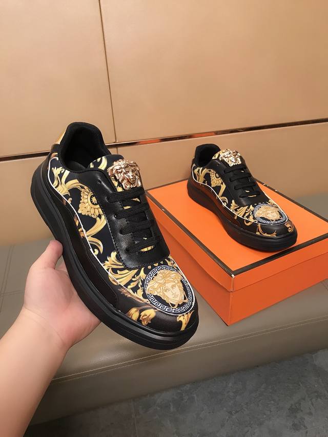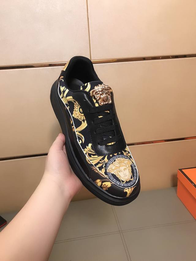 工厂p价 独家潮品,市场领先款 范思哲Versace ~独领风骚经典低帮懒人款,鞋面Logo更是重金精心打造 材料:进口头层牛皮+品牌印花面料,羊皮内里 欧美大师独特版面设计 耐磨仿滑原版大底 青年乐福款 休闲运动板鞋超级舒服,户外老司机驾车鞋,码数38-44 ! DDD
