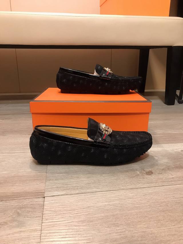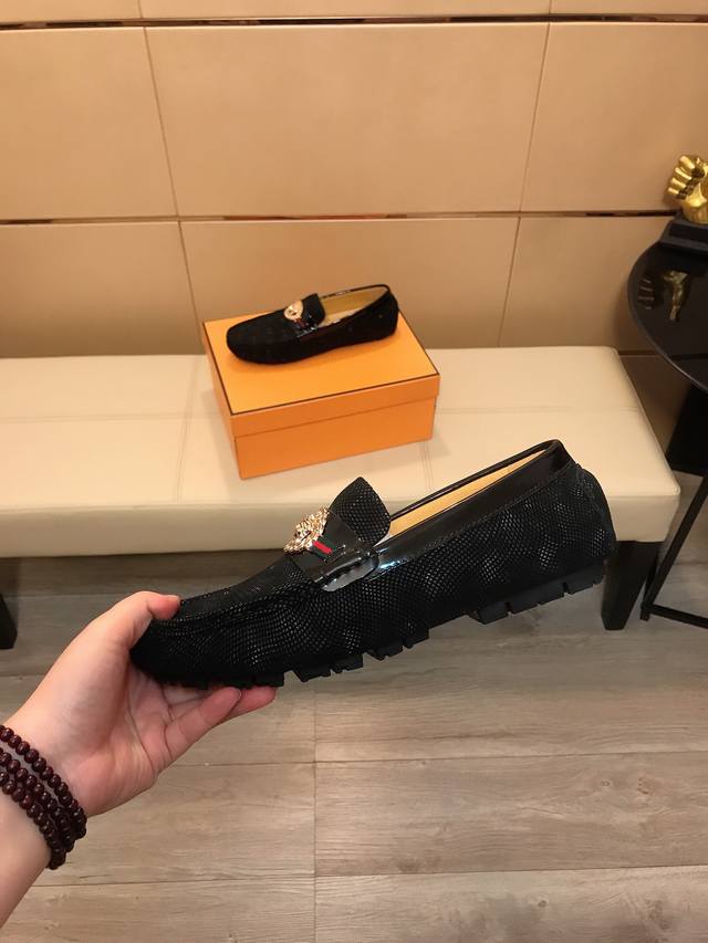 FFF 工厂P价 范思哲 豆豆鞋系列新款来袭,男士套脚鞋。鞋面采用意大利进口牛皮+进口羊皮内里,皮质超软上脚很舒适 。版型搭配精密优美缝线,彰显低调奢华 ,舒适的鞋底设计最大限度的保证了穿着的舒适及防滑性,码数38-44 DDD