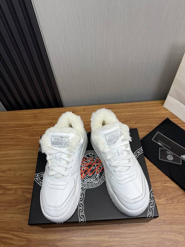 / 工厂p价 VERSACE.范思哲时尚皮革休闲运动鞋 常年热卖款 面料:头层牛皮 内里:保暖毛里 原版大底开模大底 尺码:38-45 45定做不退换