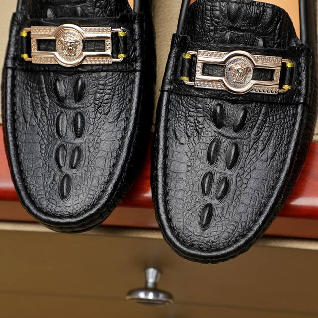 工厂P价 Versace 范思哲 男士新款豆豆鞋上市 原单品质 官网1:1同步头层牛皮皮内里,完美造型顶级品质,橡胶耐磨大底,,鞋型饱满,立体感十足超级百搭 高档不失品味,时尚、新颖 。色可选!码数:38-45 46可订做