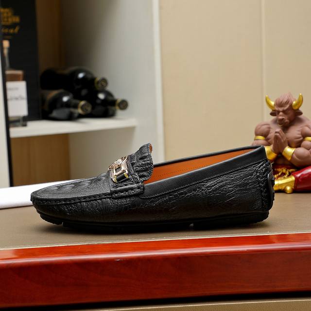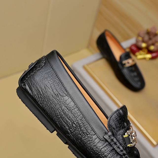 实价 , Versace 官方首发意大利男士高端商务豆豆鞋,原单正品,鞋面进口头层驼鸟皮,舒适吸汗透气羊里 不染色...