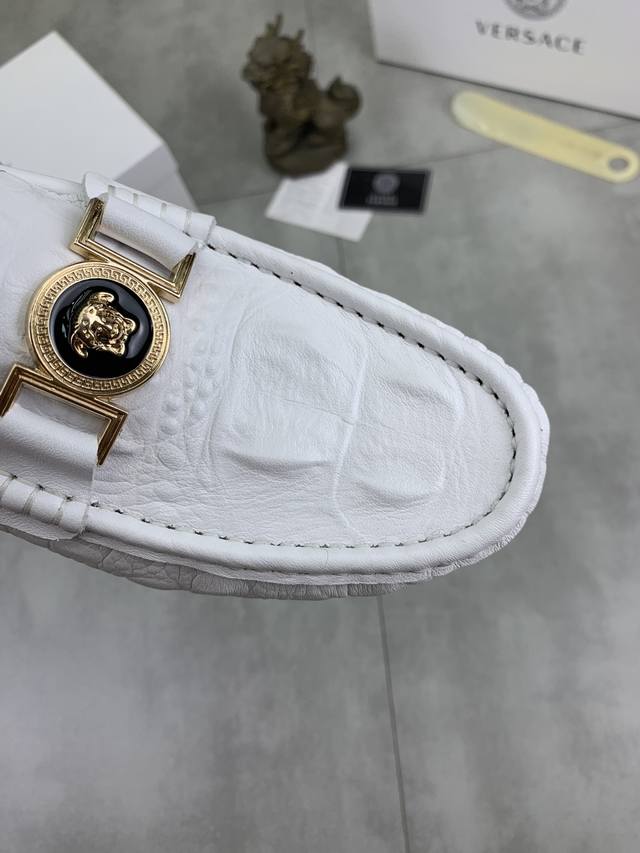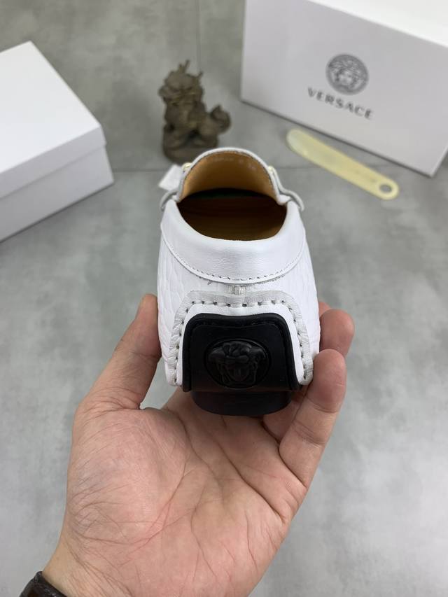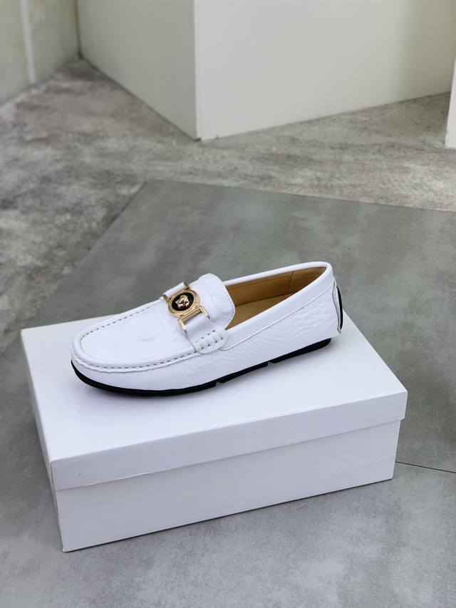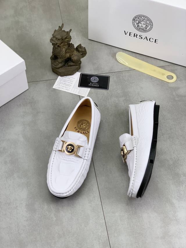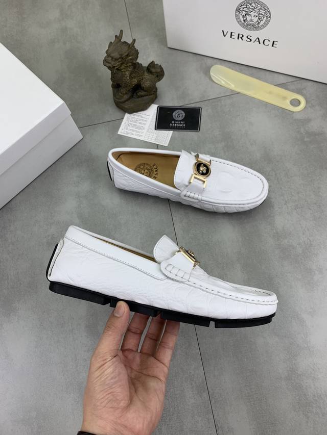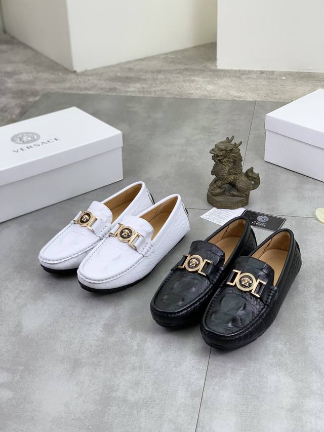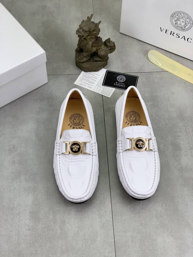 工厂P价P 实价 Versace 范思哲香港高品质豆豆鞋。懒人套脚乐福款 此款面料采用进口顶级意大利头层牛皮配原版五金全头层猪皮内里 里更为高档 原版防滑耐磨橡胶大底驾车唯一选择,码数:38-45 2色可选