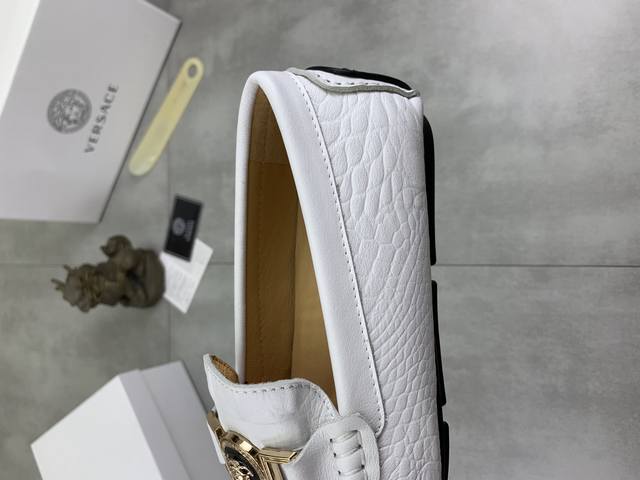/ 工厂P价P 实价 Versace 范思哲香港高品质豆豆鞋。懒人套脚乐福款 此款面料采用进口顶级意大利头层牛皮配原版五金全头层猪皮内里 里更为高档 原版防滑耐磨橡