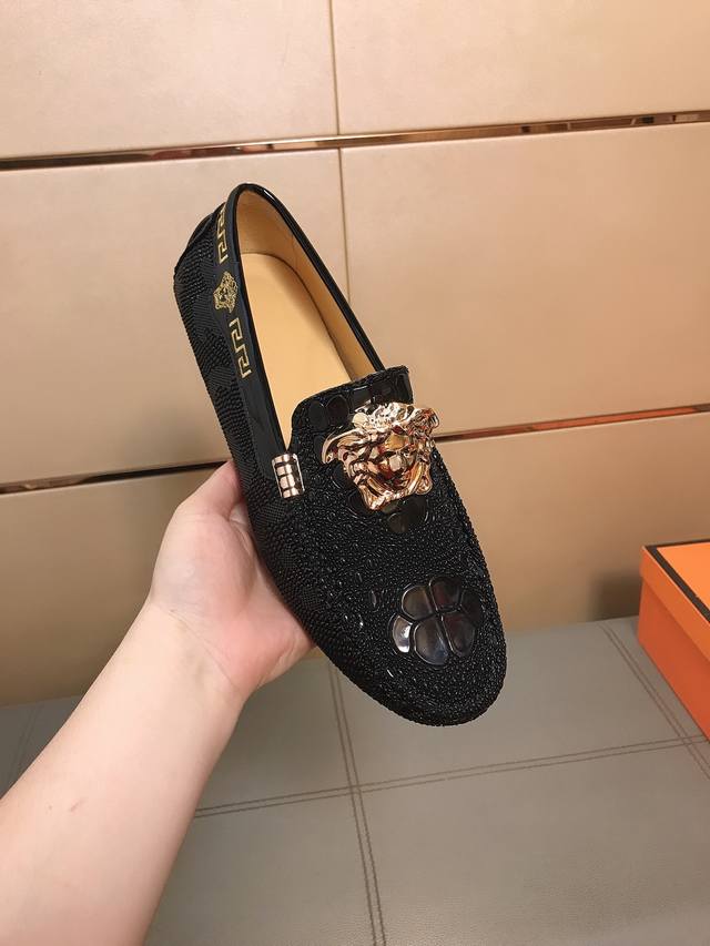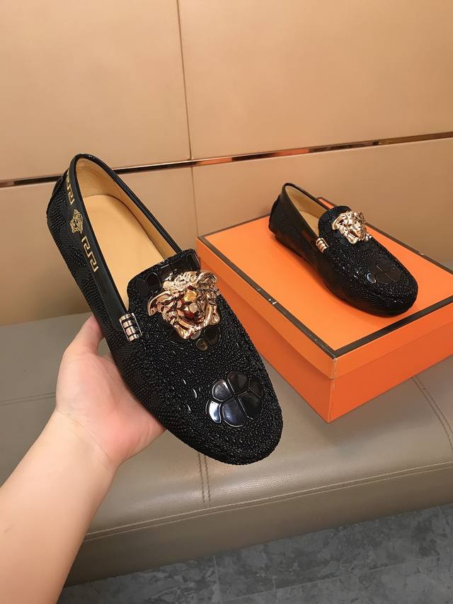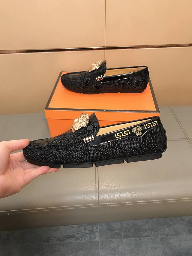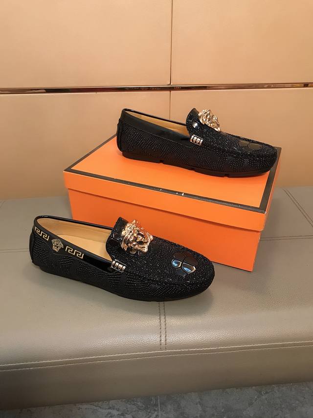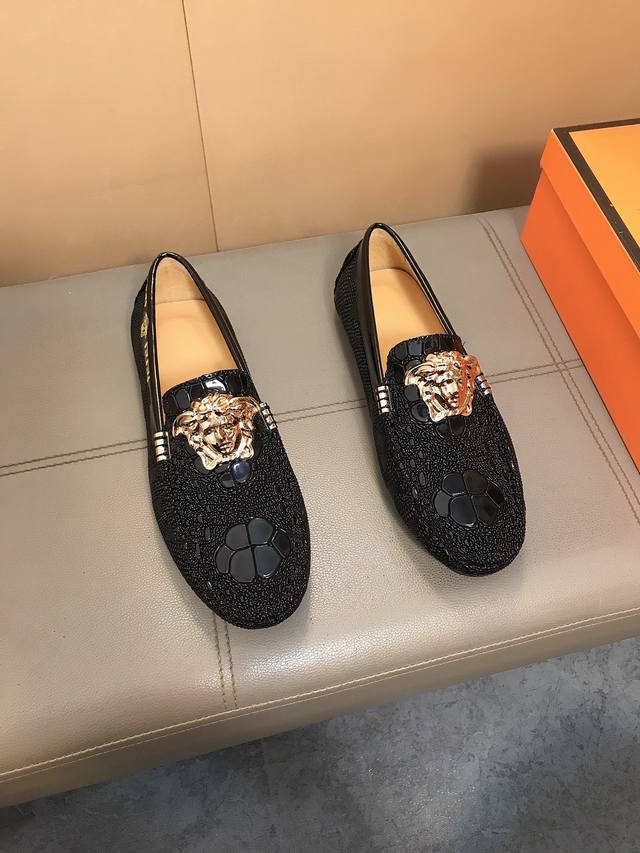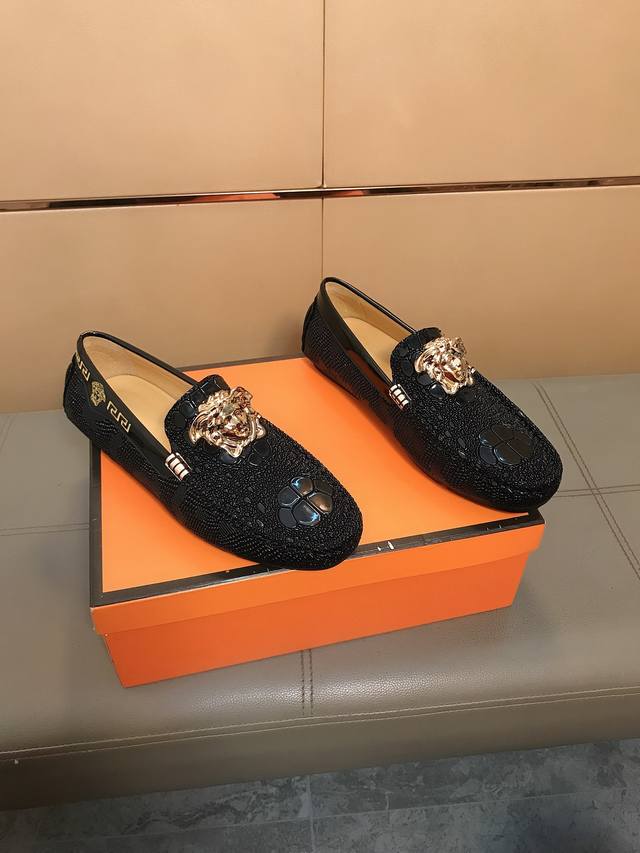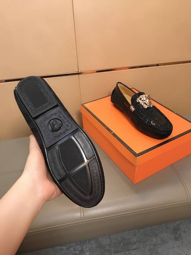 / 工厂p价p 范思哲 新款男士豆豆鞋,高品质做工精细,高端奢华鞋面采用进口意大利滴胶皮料,奢华透气羊皮内里橡胶耐磨防滑大底,穿着透气舒适高品味男士首选码数:38-