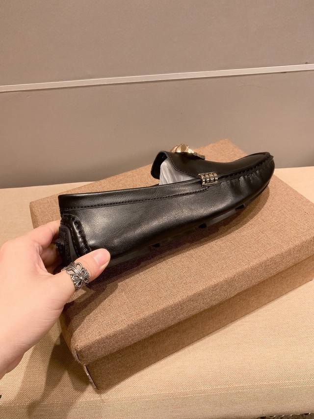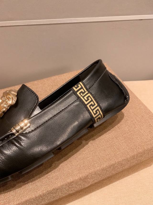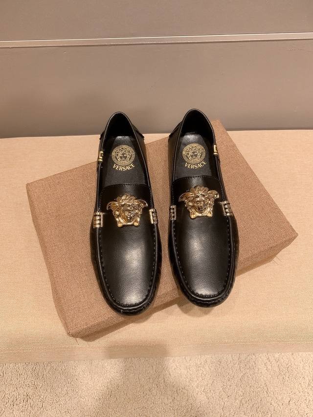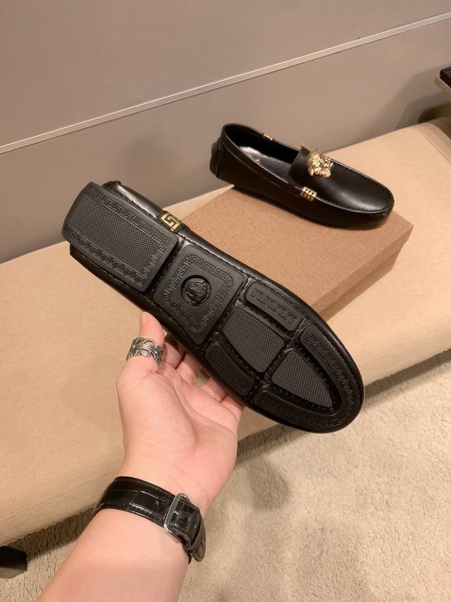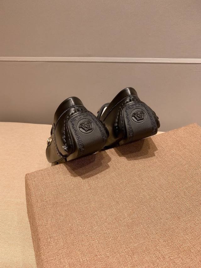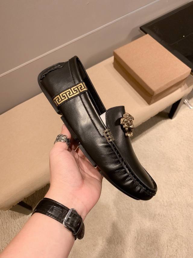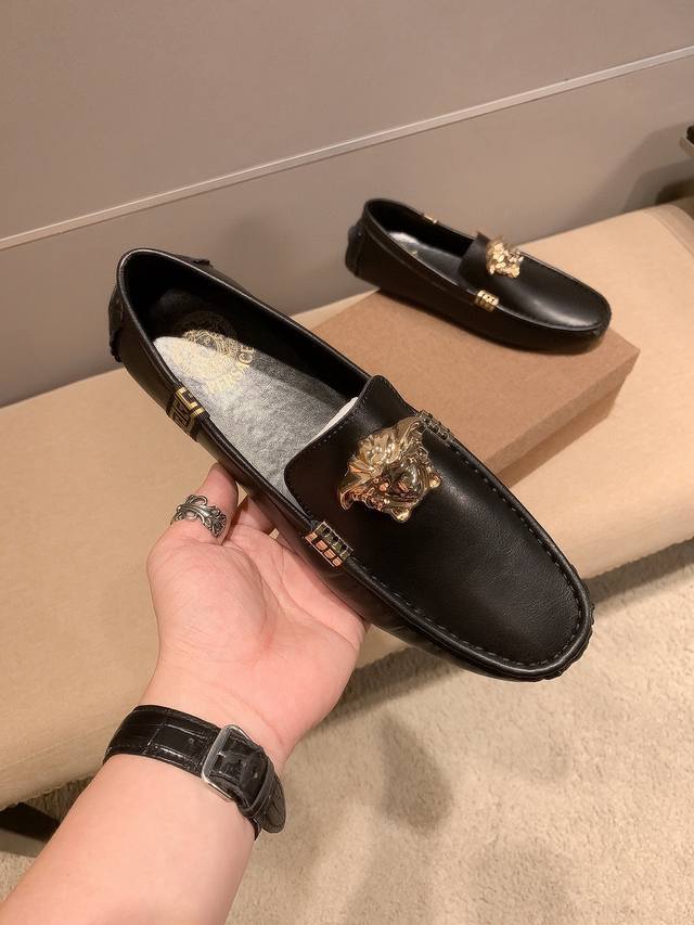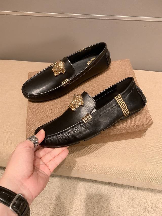 / 牛皮里真材实料, Verace 范思哲男士四季休闲豆豆鞋,最新元素潮爆全球,官网火爆热卖,原版版本,专柜爆款,鞋面意大利进口原版牛皮性感美灶莎头像金属扣,原版防