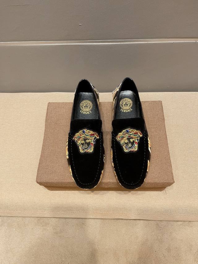 / 牛皮里真材实料, Verace 范思哲男士四季商务休闲豆豆鞋,最新元素潮爆全球,官网火爆热卖,原版版本,专柜爆款,鞋面意大利进口原版牛皮性感美灶莎头像,男士最爱